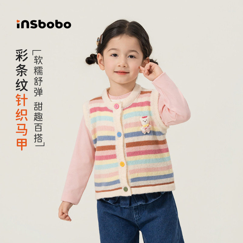 INSbobo女童毛衣儿童上衣2026春季新款宝宝好看马甲洋气针织开衫