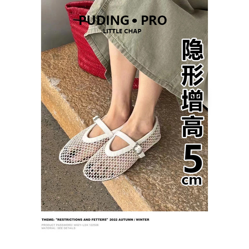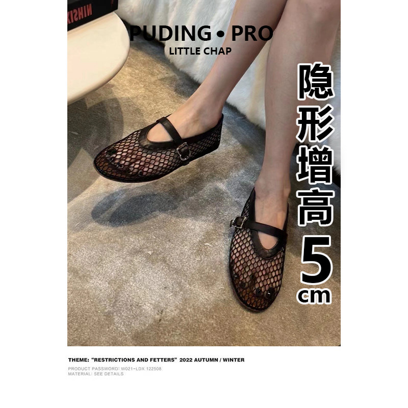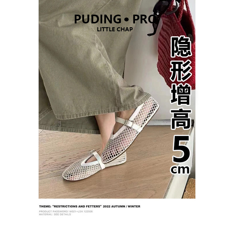 羊皮版~软底内增高网面镂空玛丽珍单鞋女新款小个子透气芭蕾舞鞋