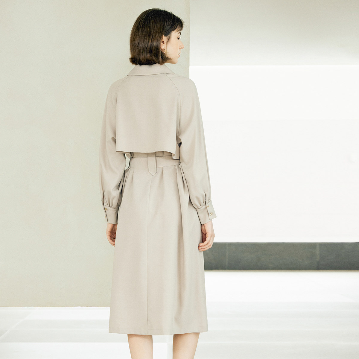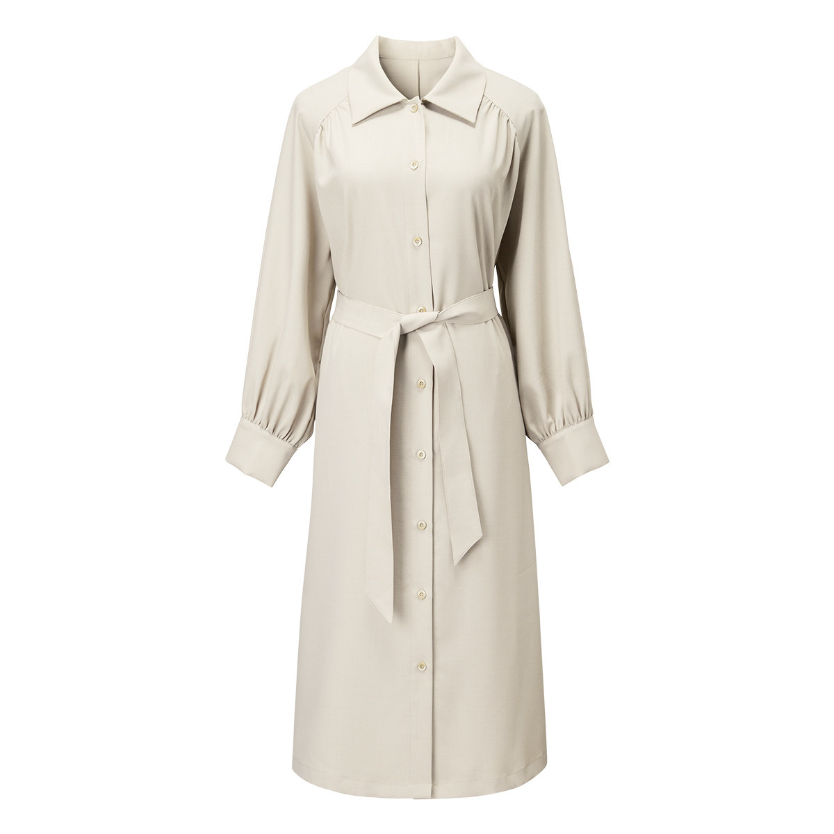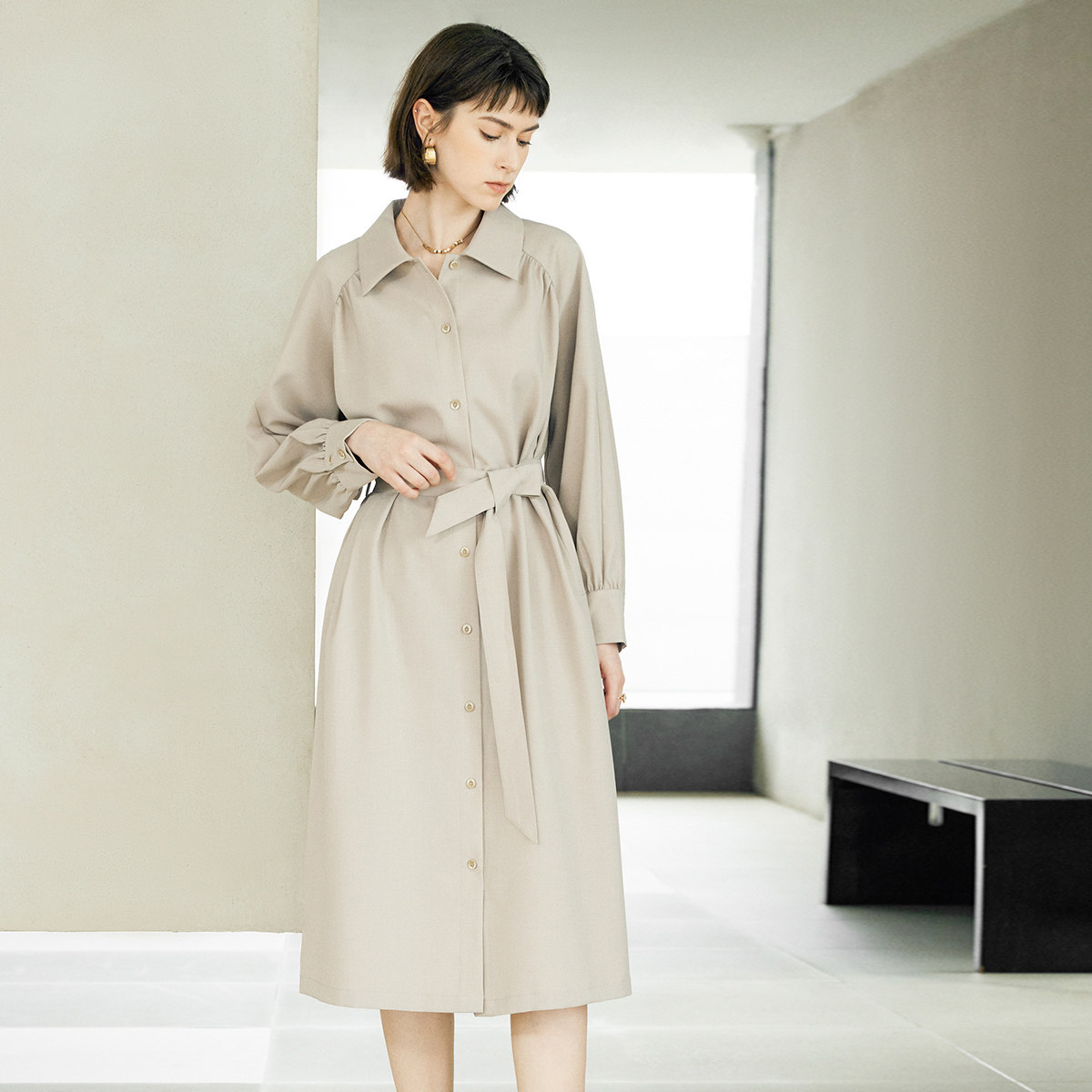 颜域长袖翻领系带连衣裙春装女款2026年新款优雅气质中长款裙子女