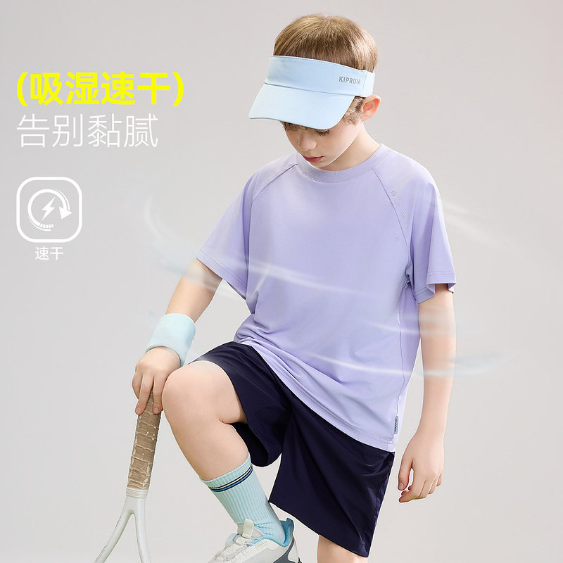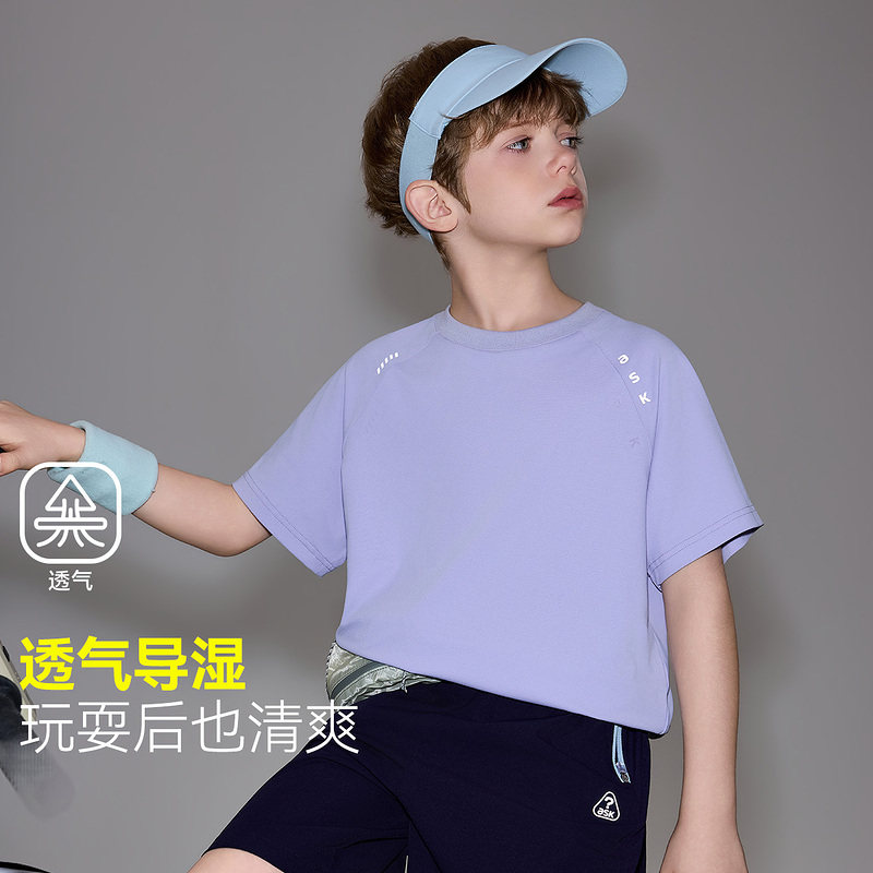 ask儿童T恤2026夏季新款男童运动吸湿速干短袖中大童圆领透气上衣