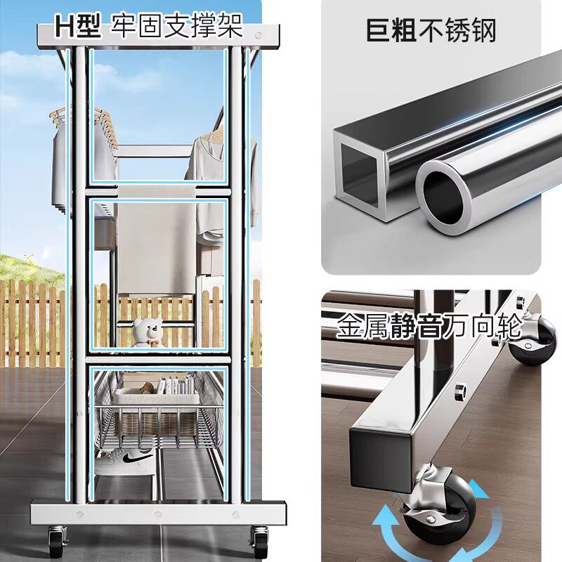 加厚不锈钢晾衣架落地式家用阳台庭院防风晾衣杆户外可移动晒被架