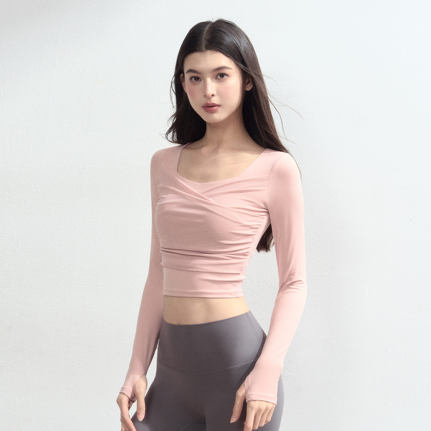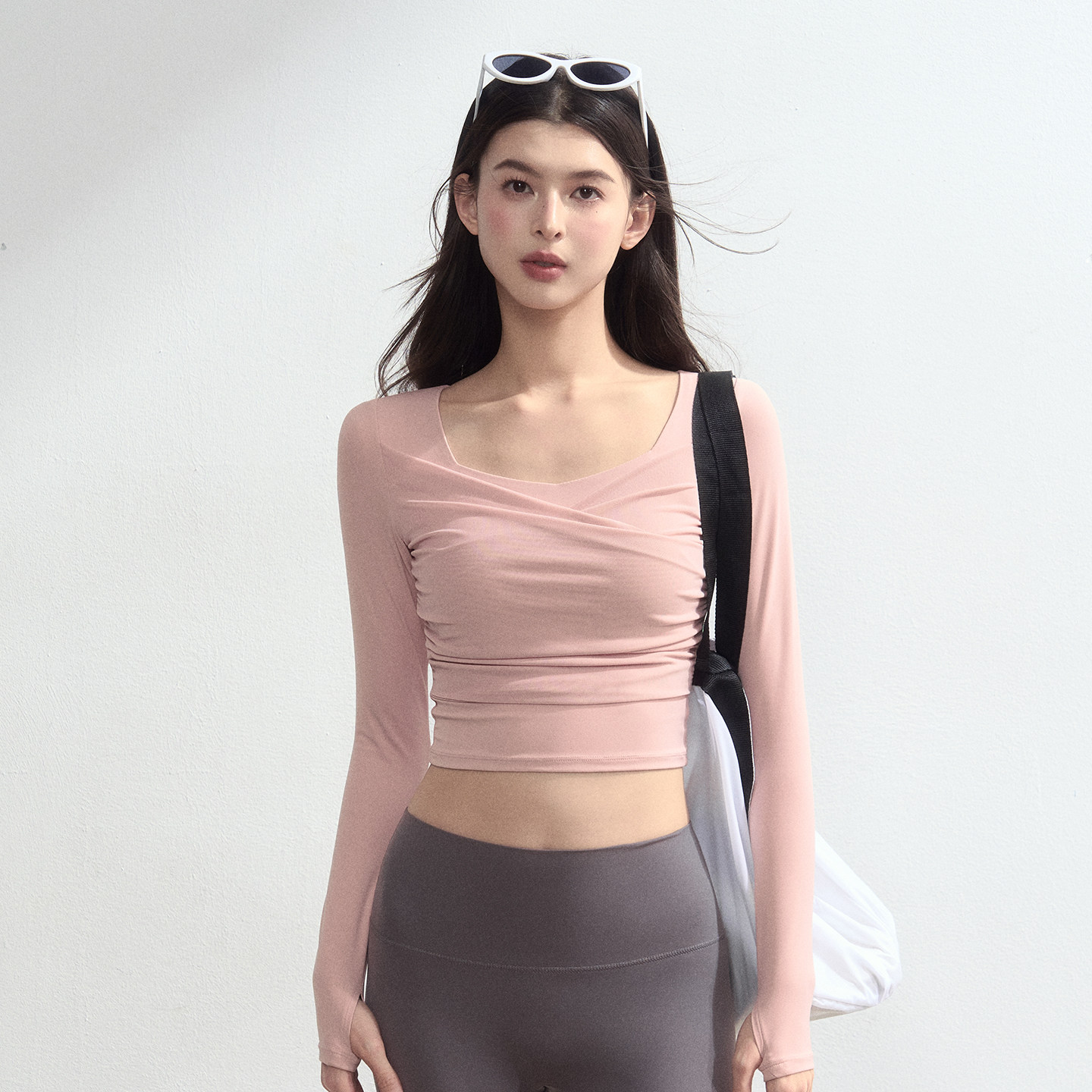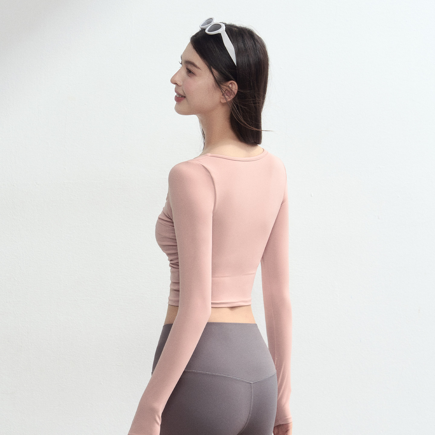 311线报网描述:一体固定胸垫免穿内衣紧身显瘦瑜伽运动长袖