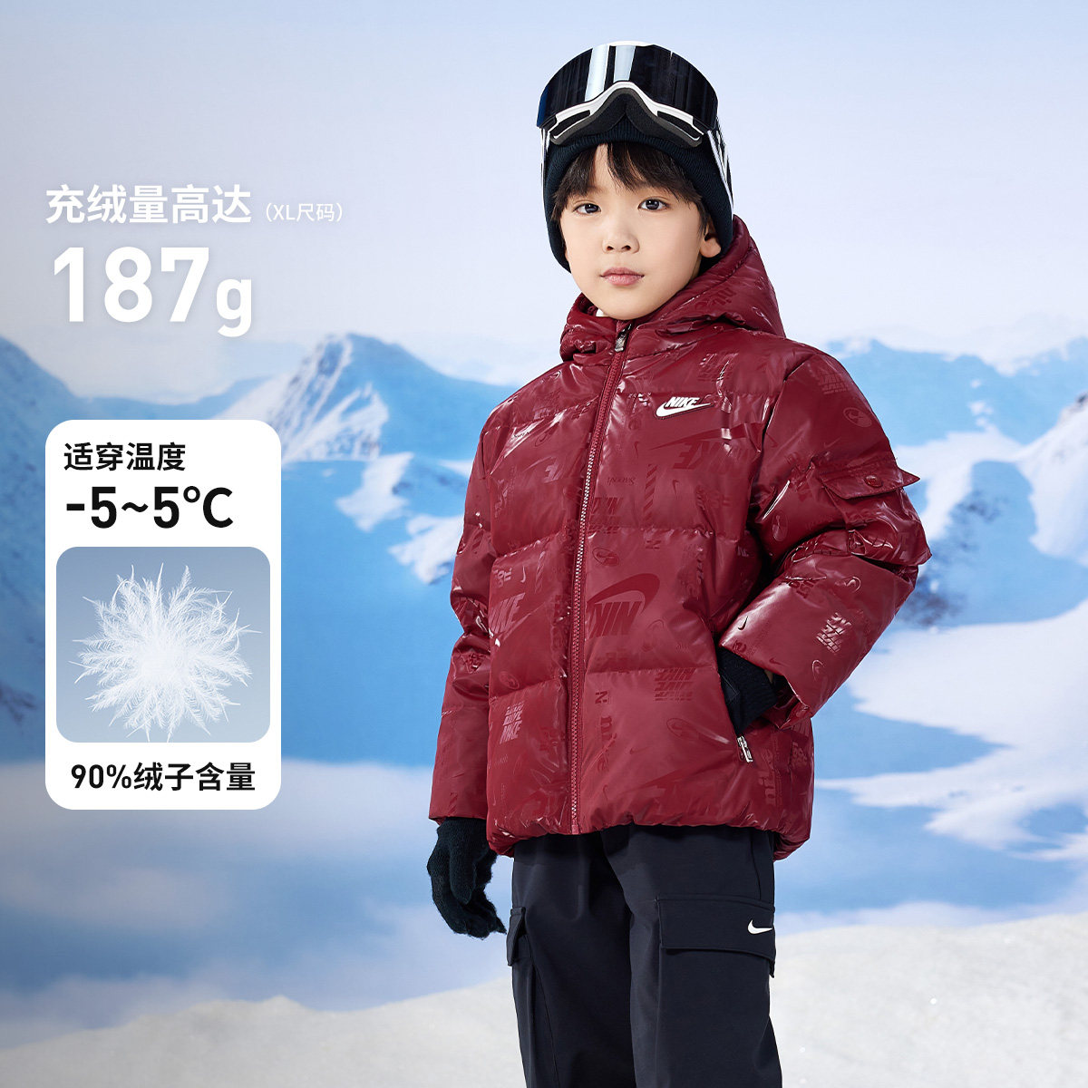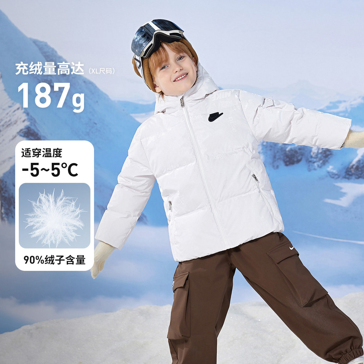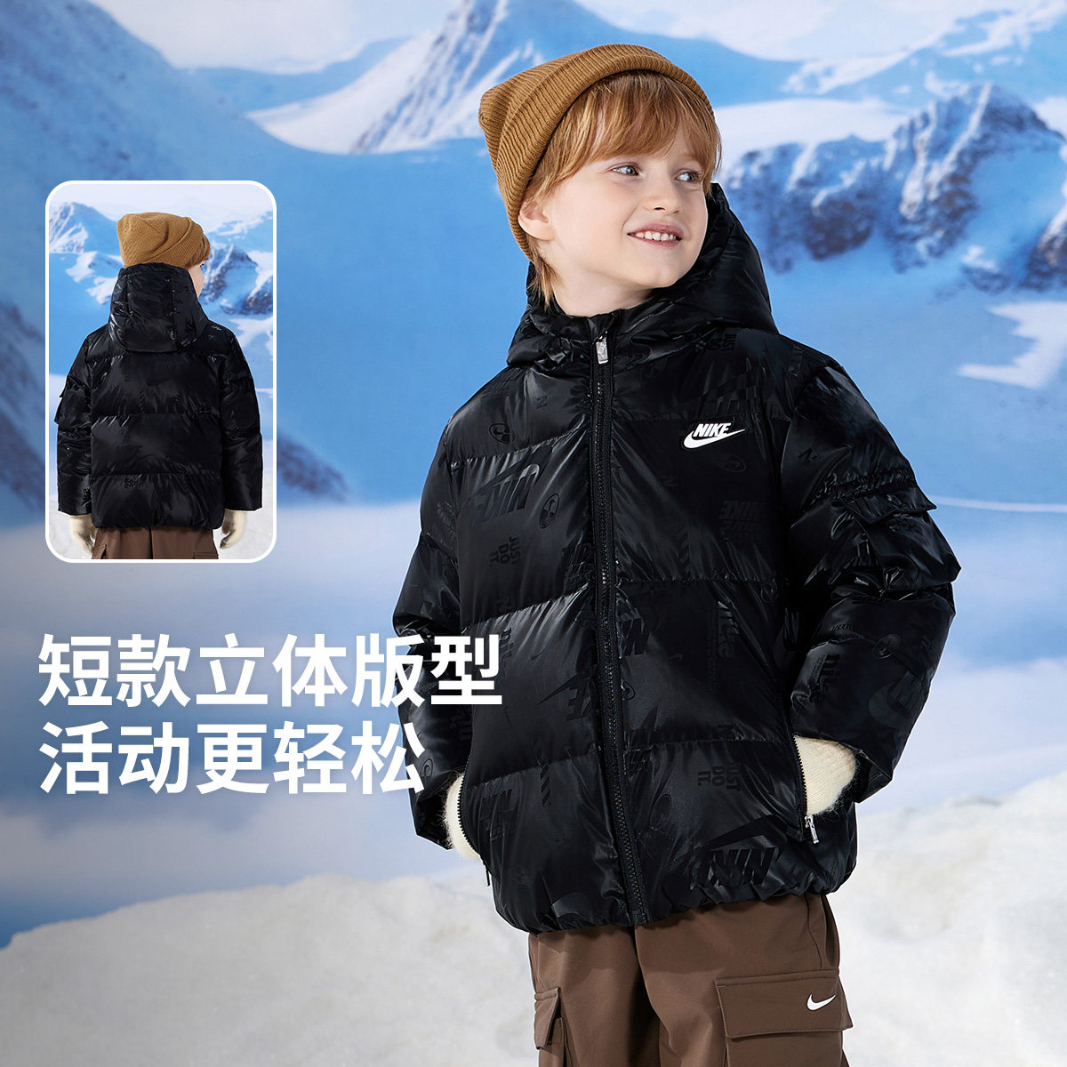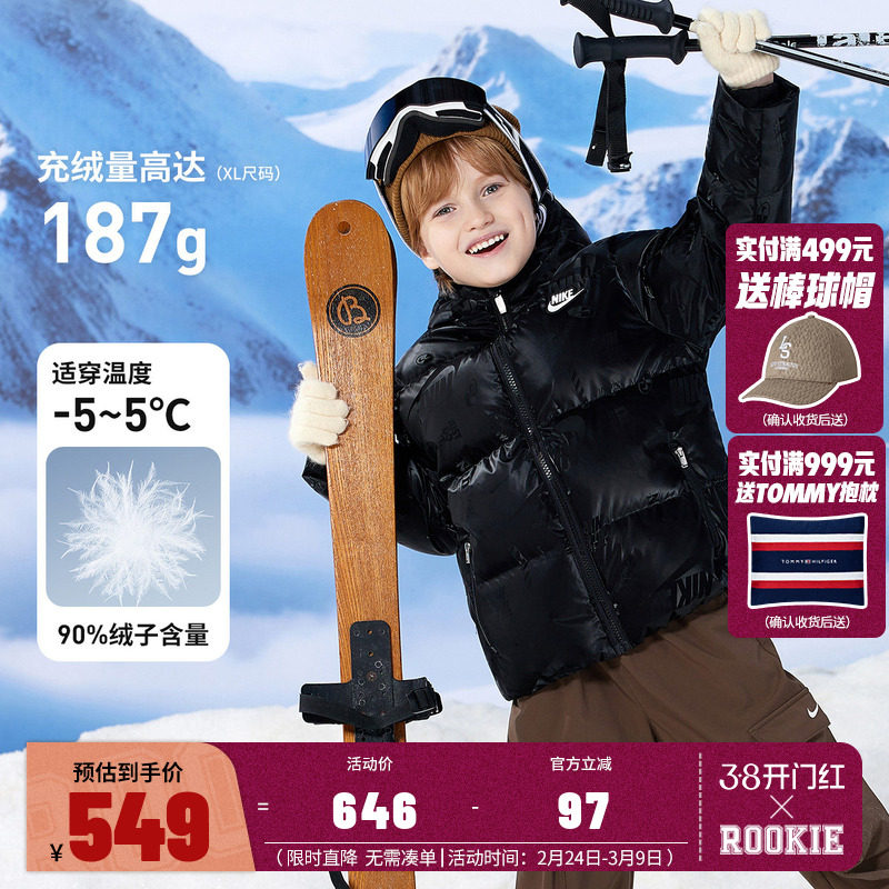 Nike童装儿童羽绒服男童2025冬季新款保暖防风外套棉衣NY2442030