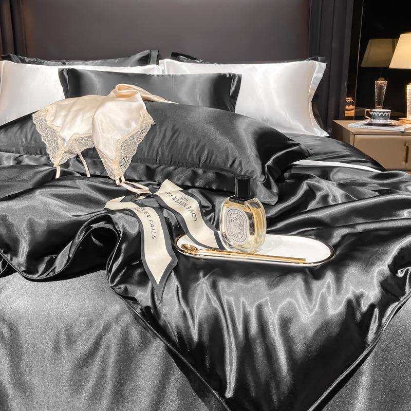 夏天黑色四件套冰丝纯色夏季新款床上用品凉感丝滑床单被套床笠