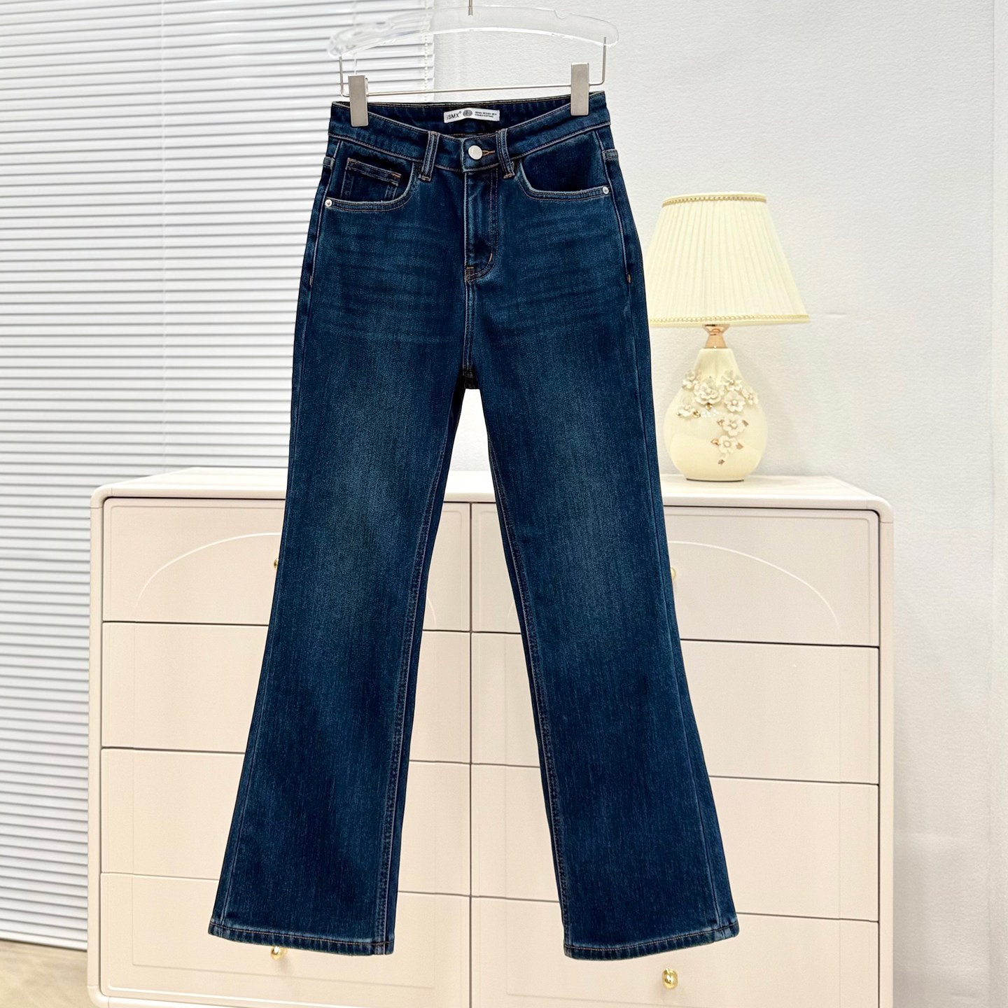 ISMX小个子加绒微喇叭牛仔裤版型超好看的裤子女款高腰显瘦九分裤