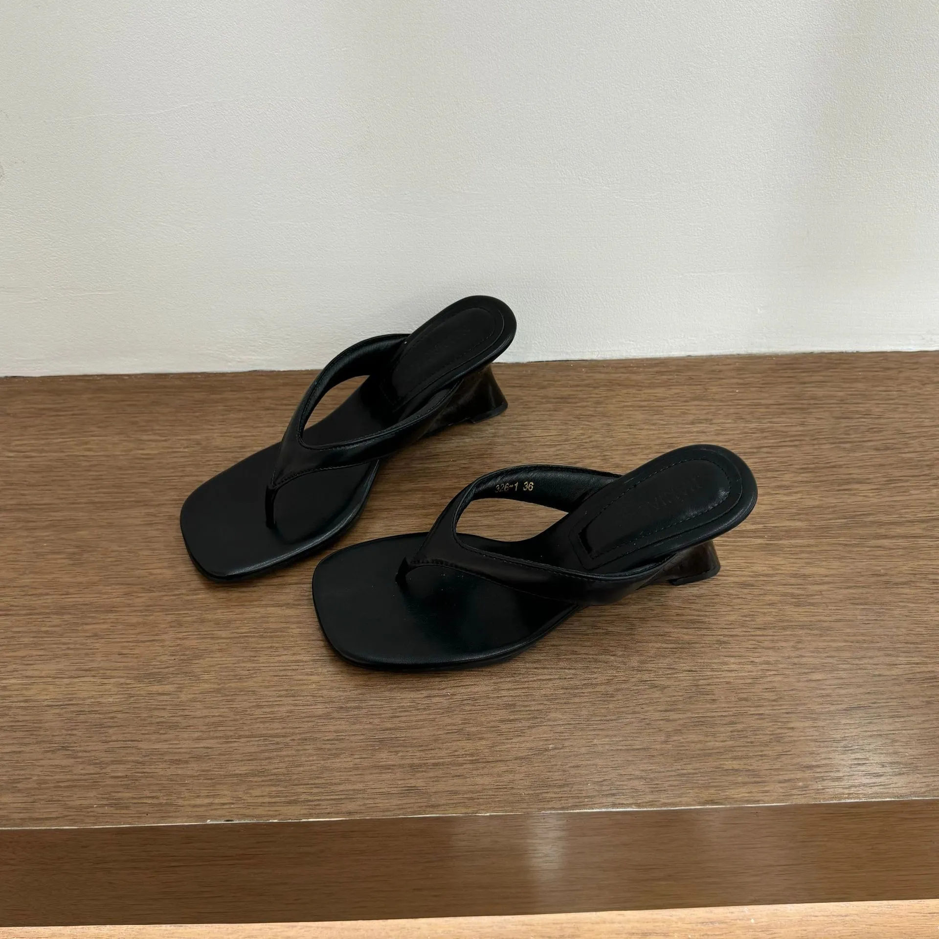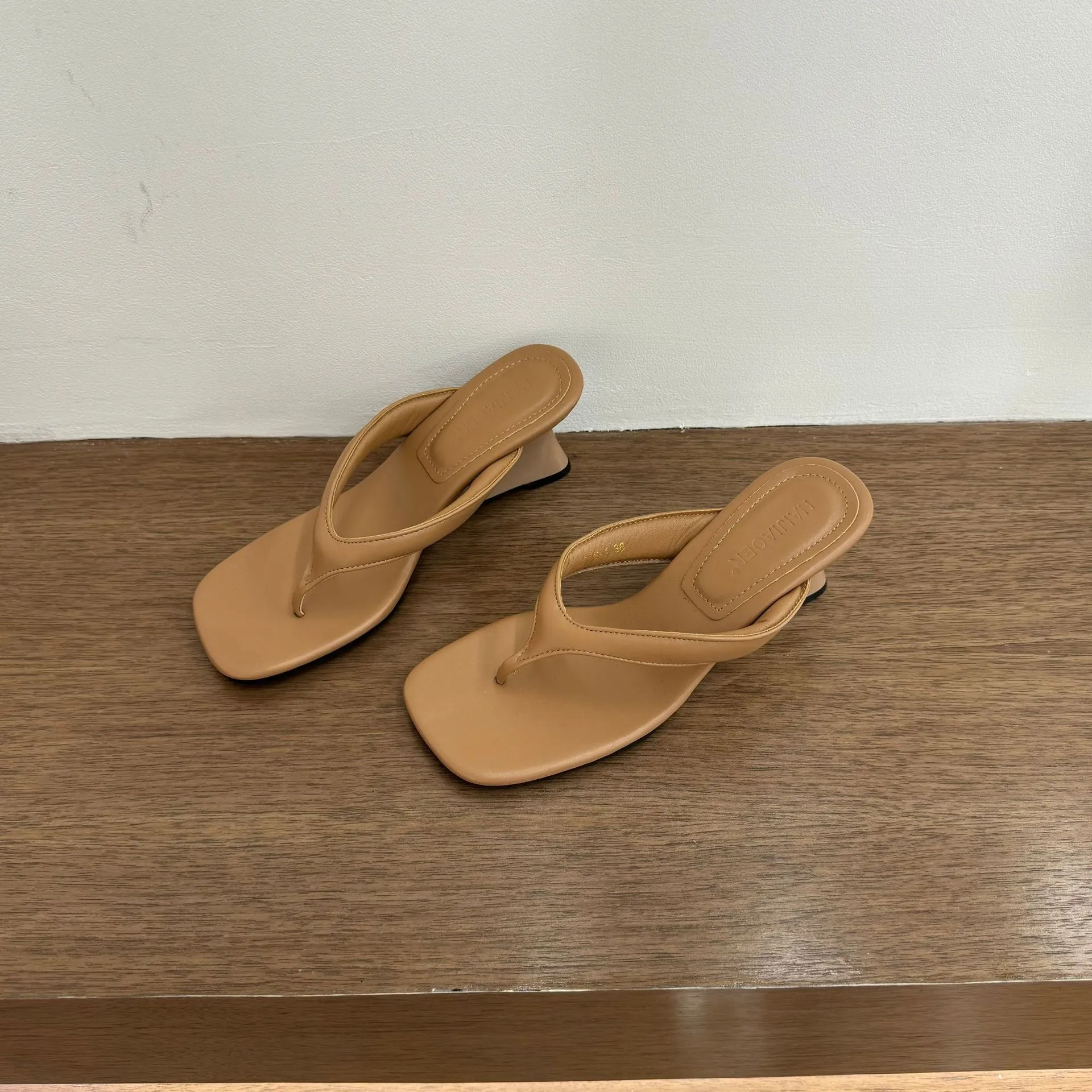 网红白色坡跟增高人字拖鞋女款夏外穿2025新款配裙子法式凉拖鞋子
