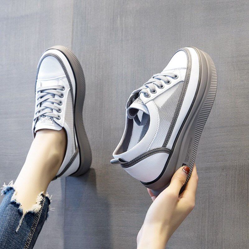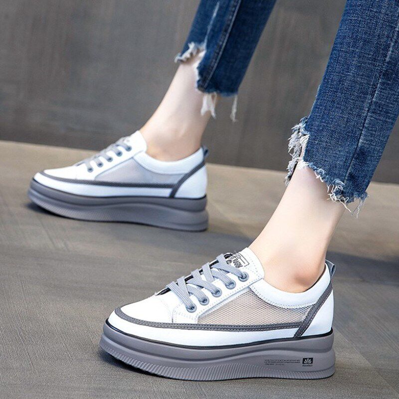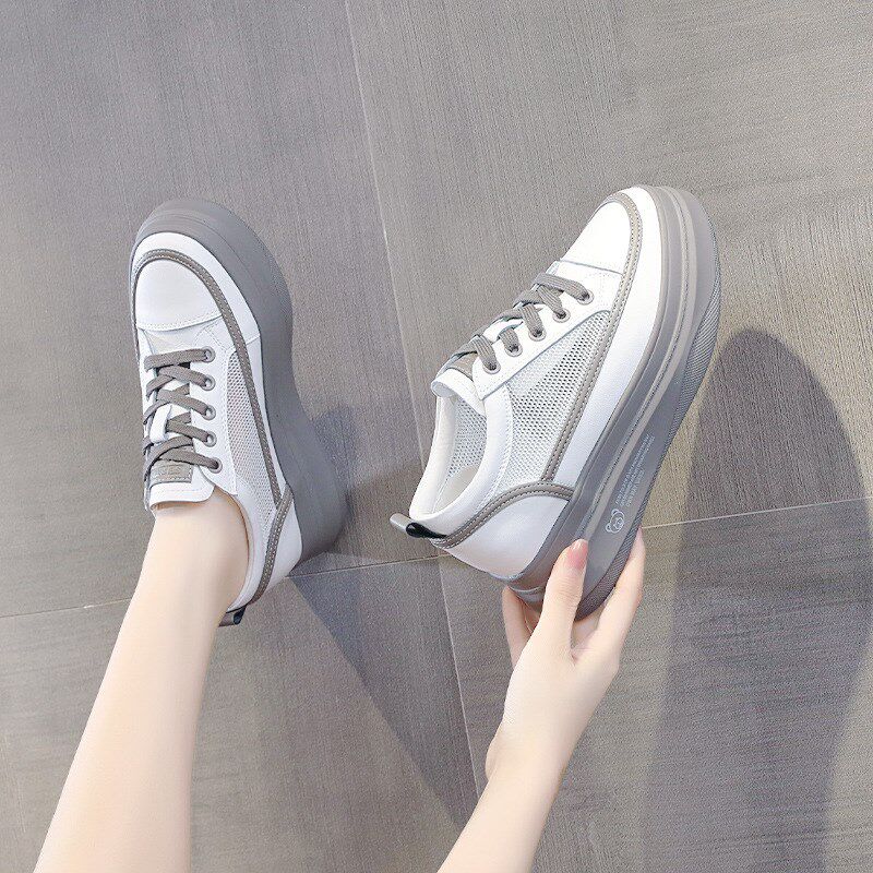 网面鞋女款内增高小白鞋夏季配裙子的鞋子松糕底透气休闲运动鞋潮