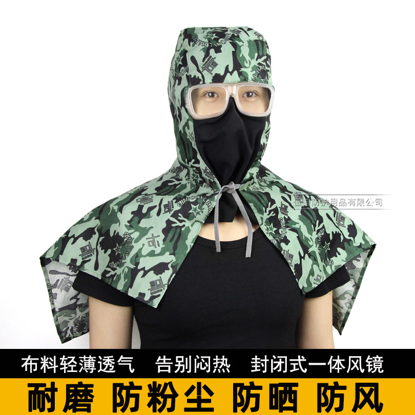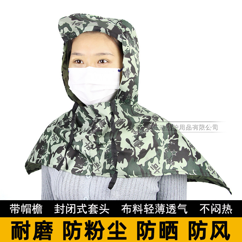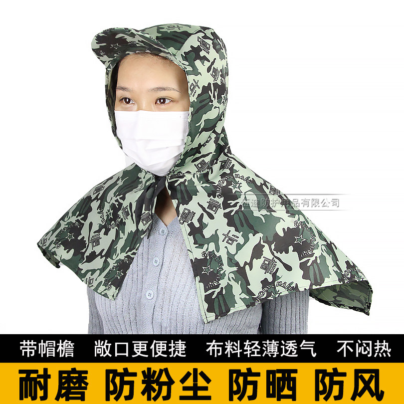 夏季轻薄透气迷彩搬运防尘披肩风帽工地装卸工水泥打磨防晒劳保帽