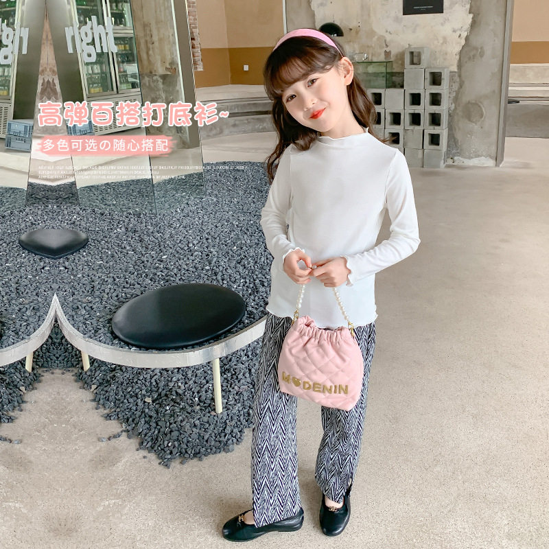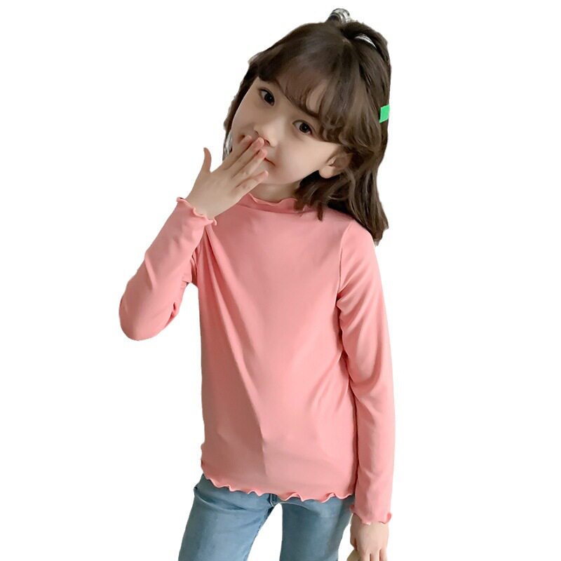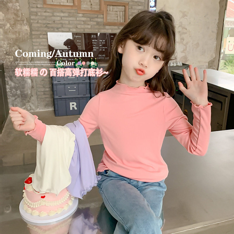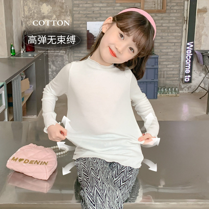 女童白色打底衫儿童裙子内搭秋季花边半领长袖紧身纯色上衣打底衣
