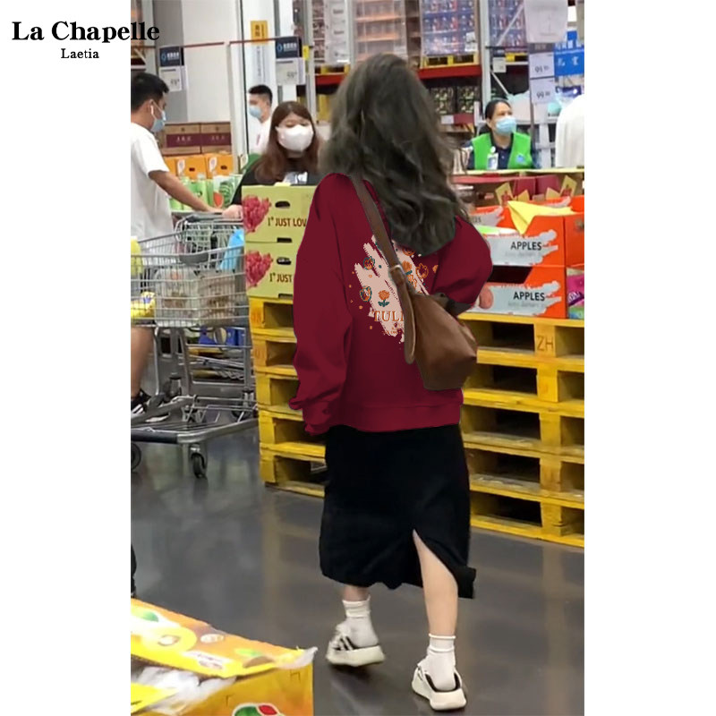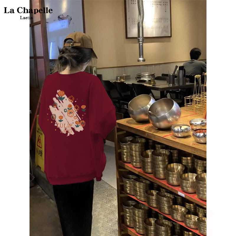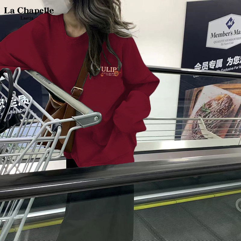 拉夏贝尔圆领卫衣女款小个子2026新款爆款加绒加厚上衣外套秋冬装