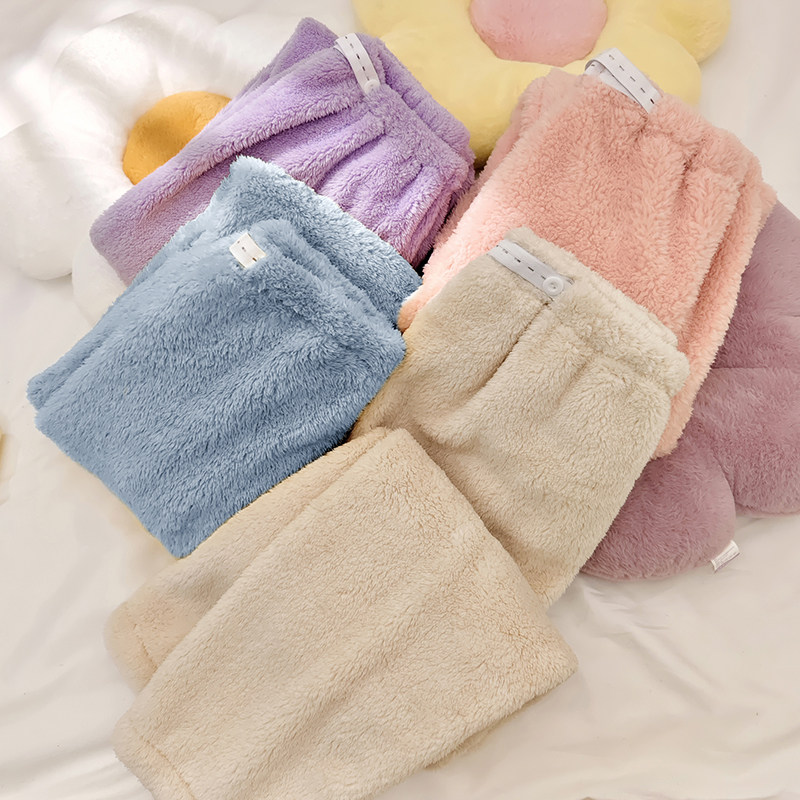150cm小个子休闲月子裤秋冬加厚珊瑚绒月子服女可调节家居裤睡裤