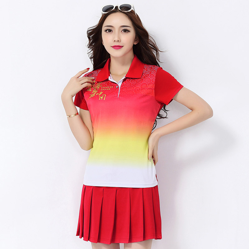 晋冠中国梦南韩丝白色网球服套装两件套女羽毛球服团体表演出场服