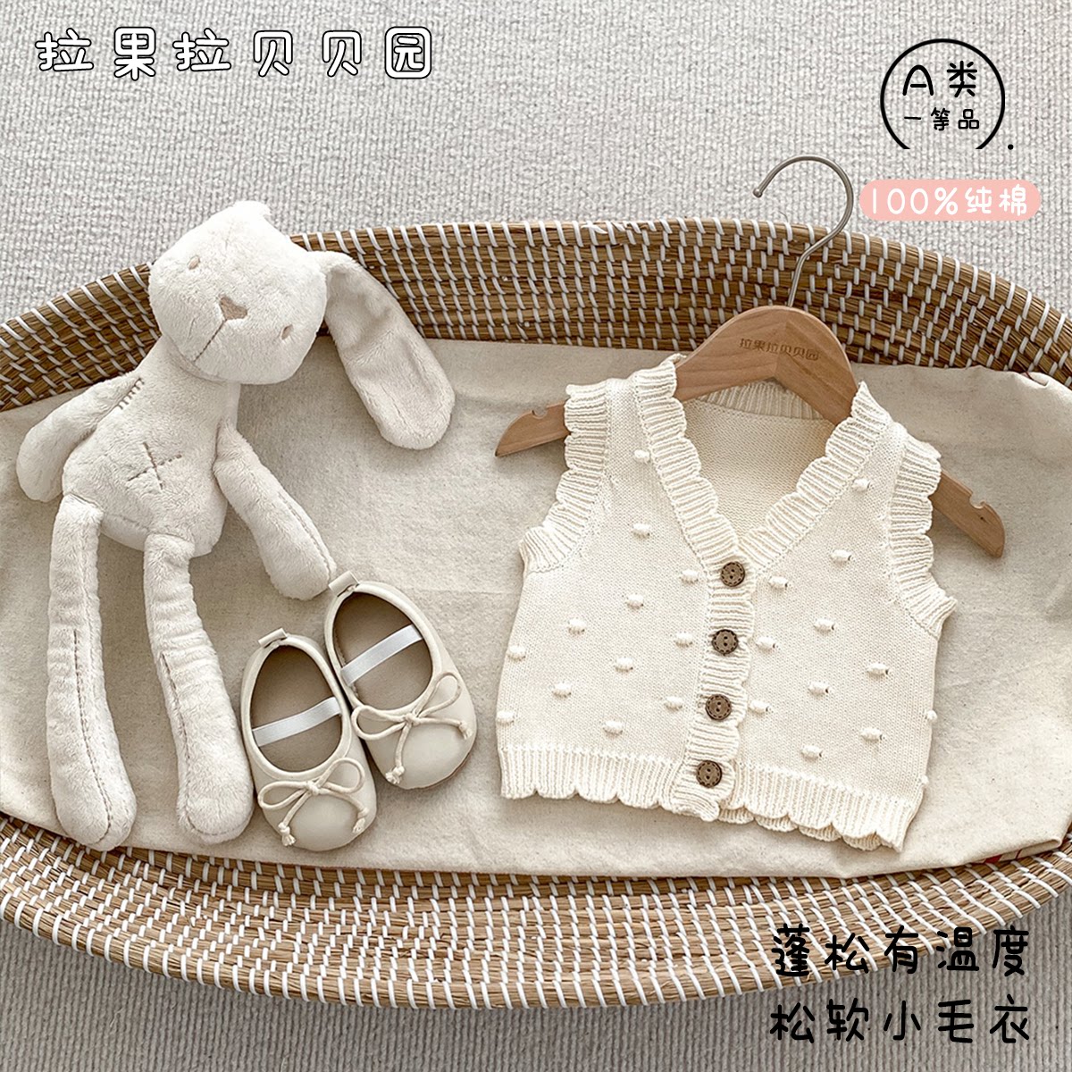 拉果拉贝贝园婴儿马甲男童女童宝宝纯棉针织背心春秋款小月龄毛衣