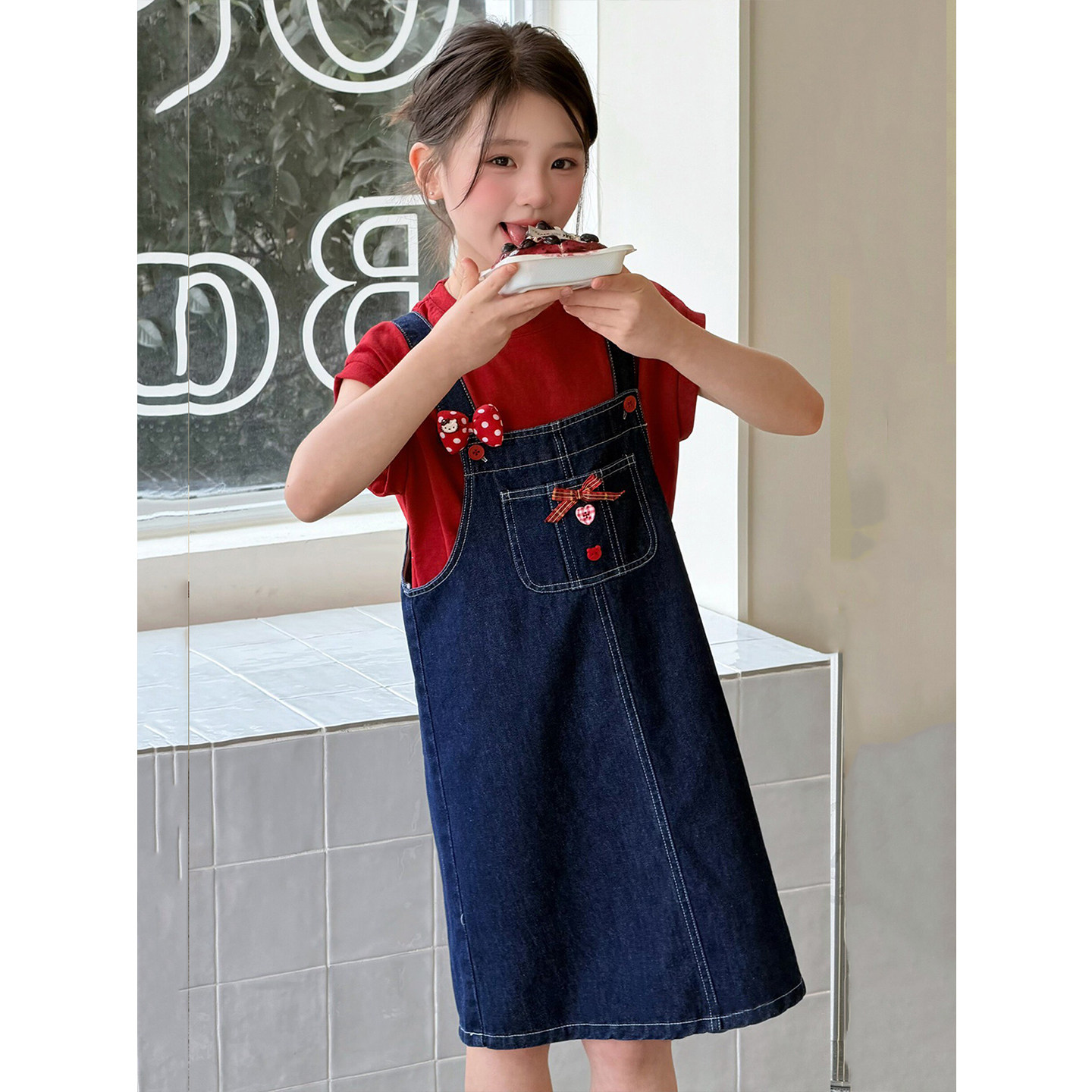 2026春夏新款韩版女童牛仔背带裙中大童休闲时尚甜美风连衣裙亲子