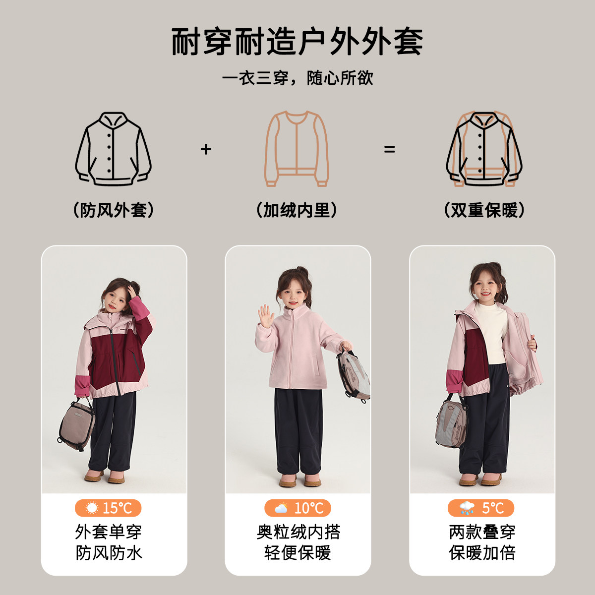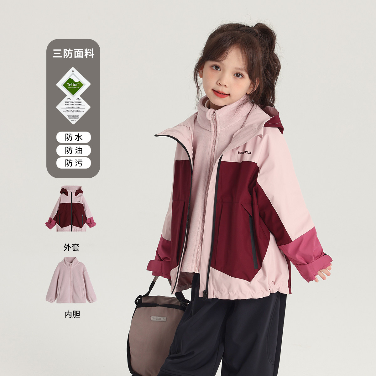 沫沫家童装冬装女童上衣2026秋冬季新款儿童三防加绒拼色外套