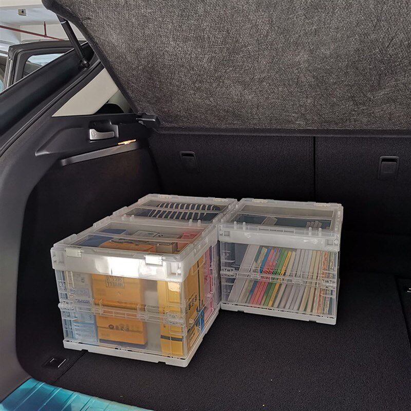 加厚透明折叠收纳箱带盖车载后备储物箱多功能整理箱可叠码不占地