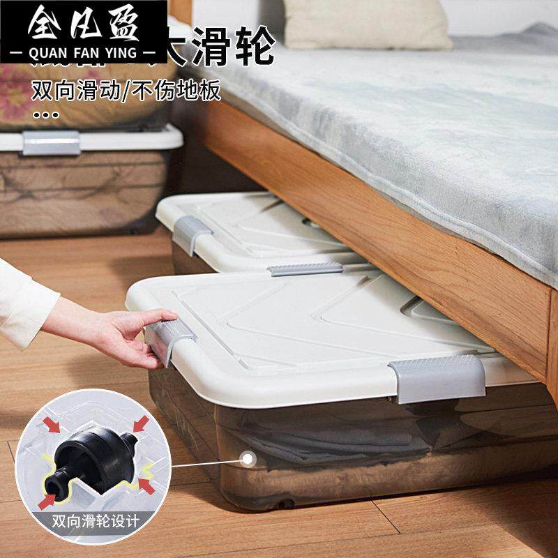 透明收纳箱带盖床底塑料带滑轮衣物被子家用扁平沙发下整理箱鞋子