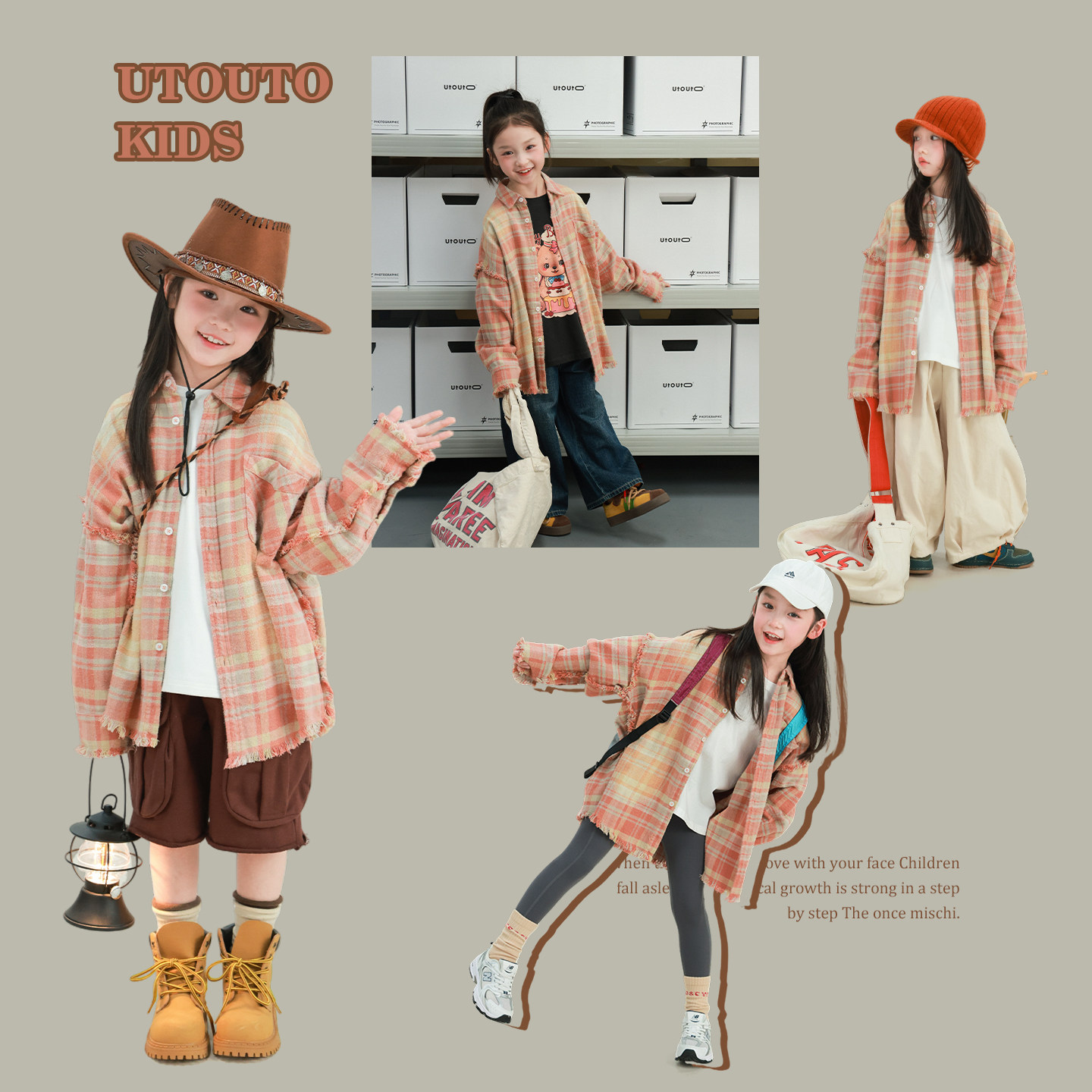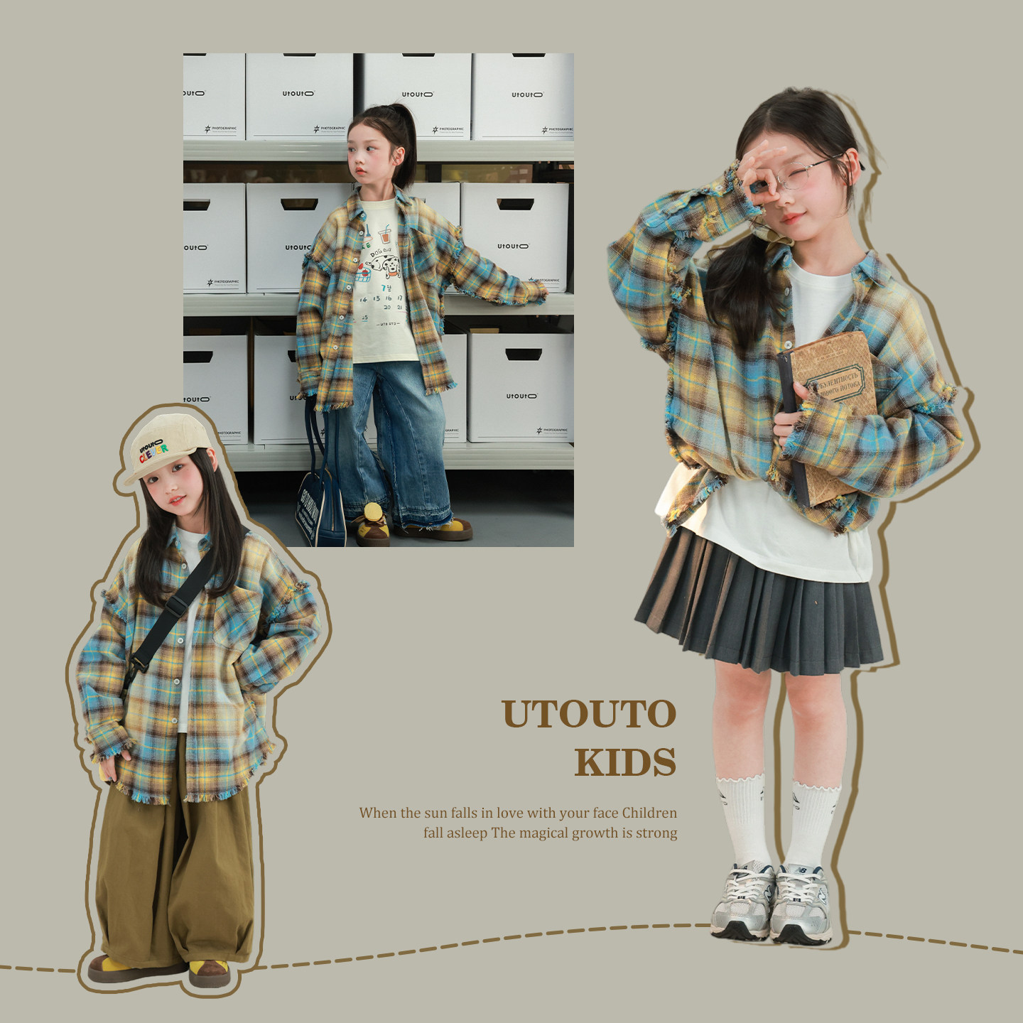 大耳象女童毛须边格子衬衫2026春季新款宝儿纯棉休闲百搭长袖外套