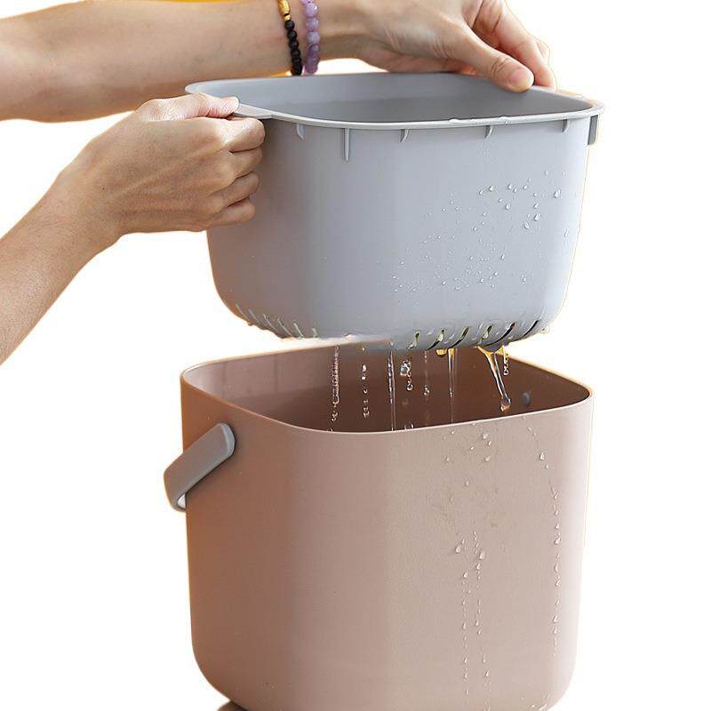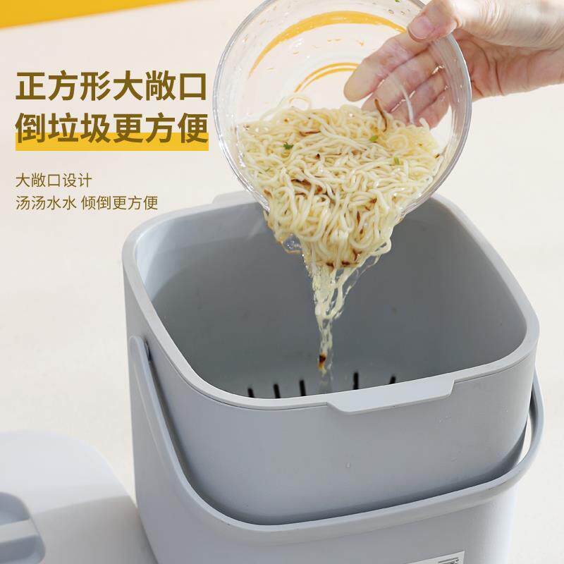 厨余垃圾桶家用带盖桌面干湿分类餐厨防臭厨房台面沥水分离桶卡其