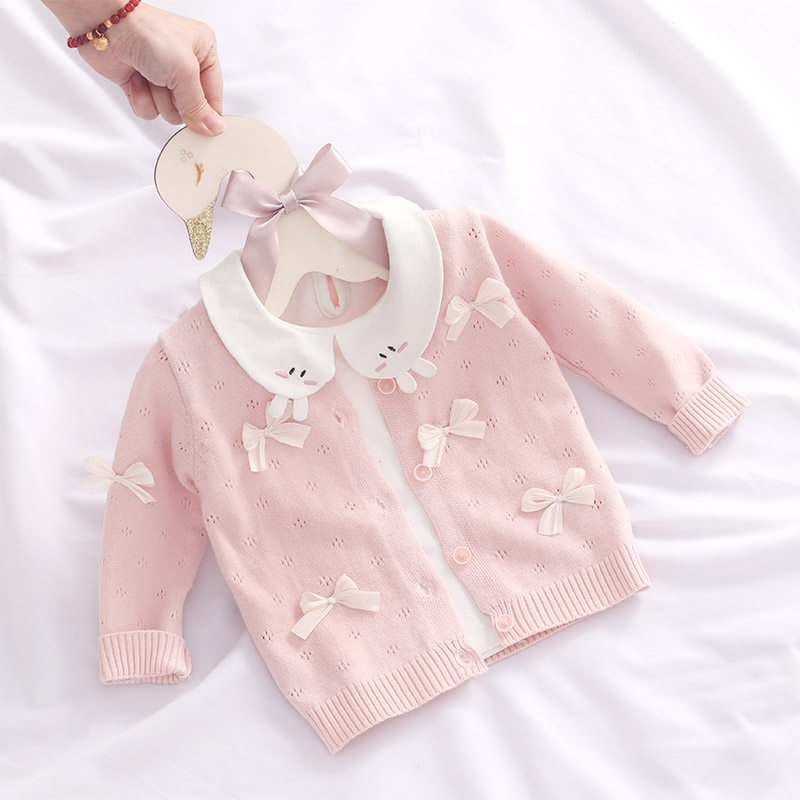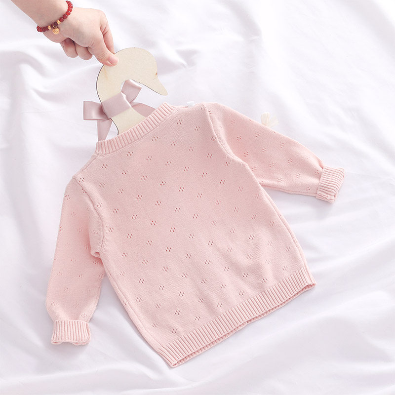 2026女童针织开衫纯棉宝宝空调衫婴儿毛衣外套公主镂空薄款春夏装