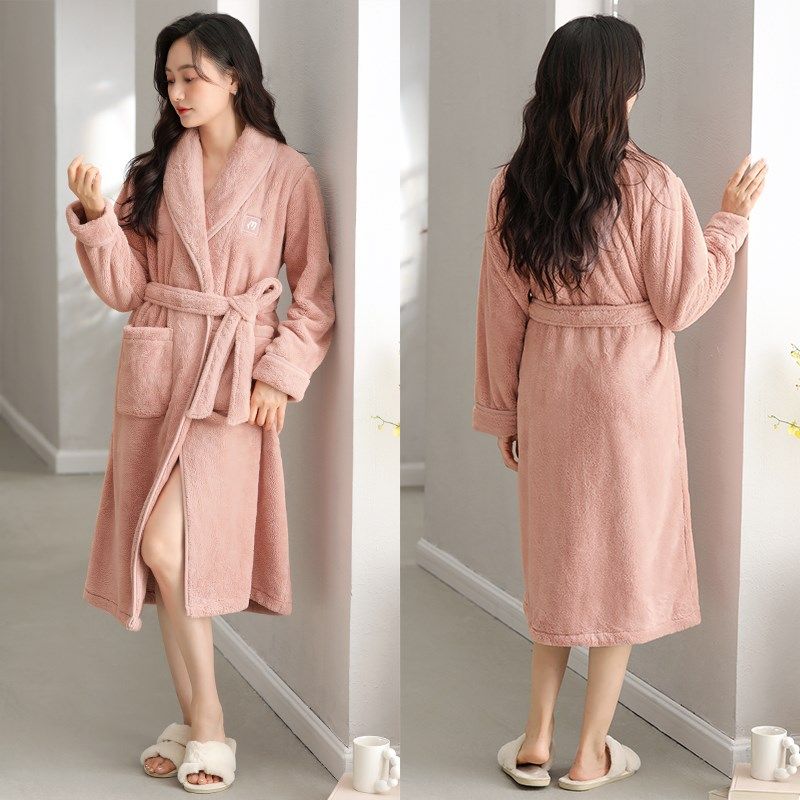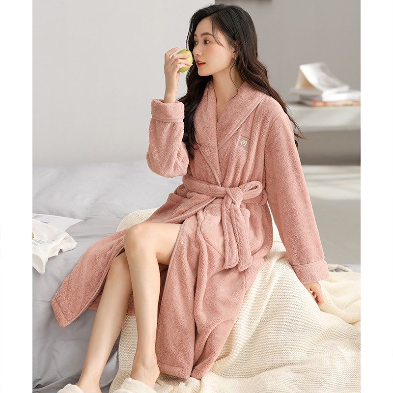 睡袍女冬季珊瑚绒加厚加绒长款睡衣女款秋冬法兰绒浴袍冬款家居服
