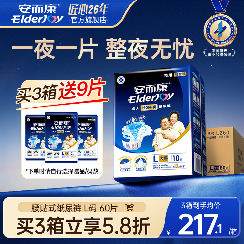 安而康长效干爽成人纸尿裤夜用老年人老人用加厚尿不湿囤货装60片
