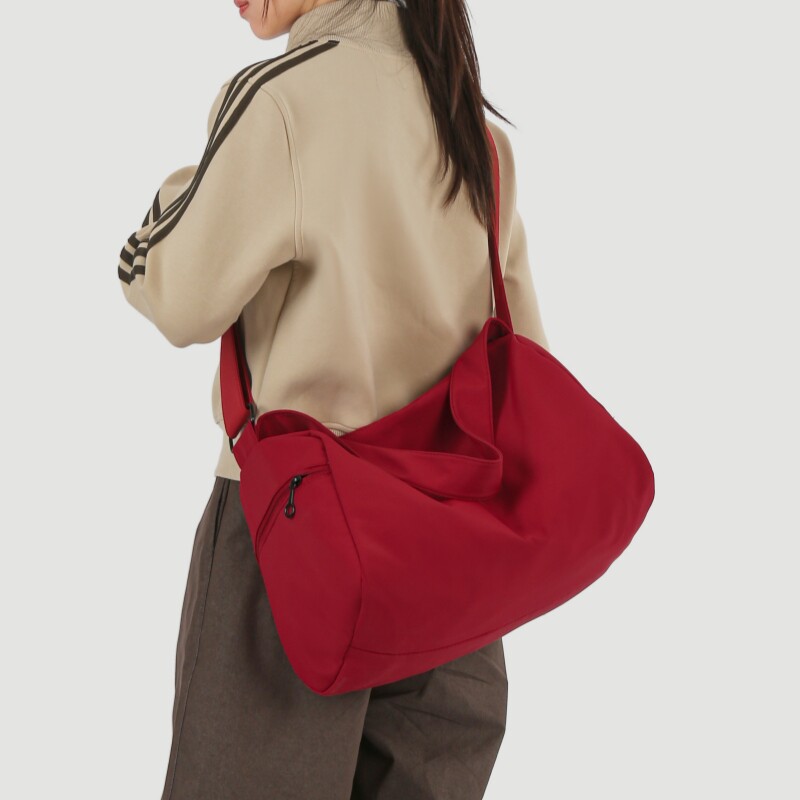 帆布包包女2026新款ins宽肩带斜挎包大容量通勤饺子包简约单肩包