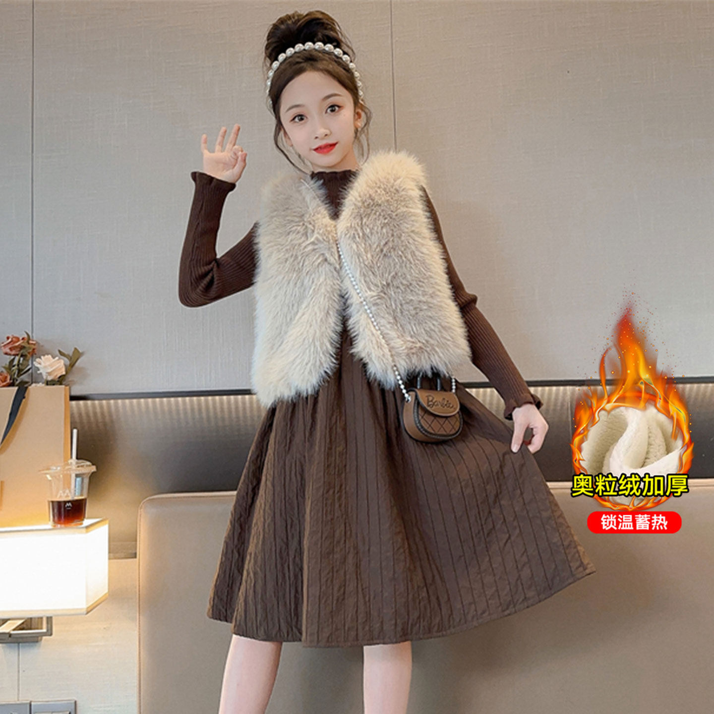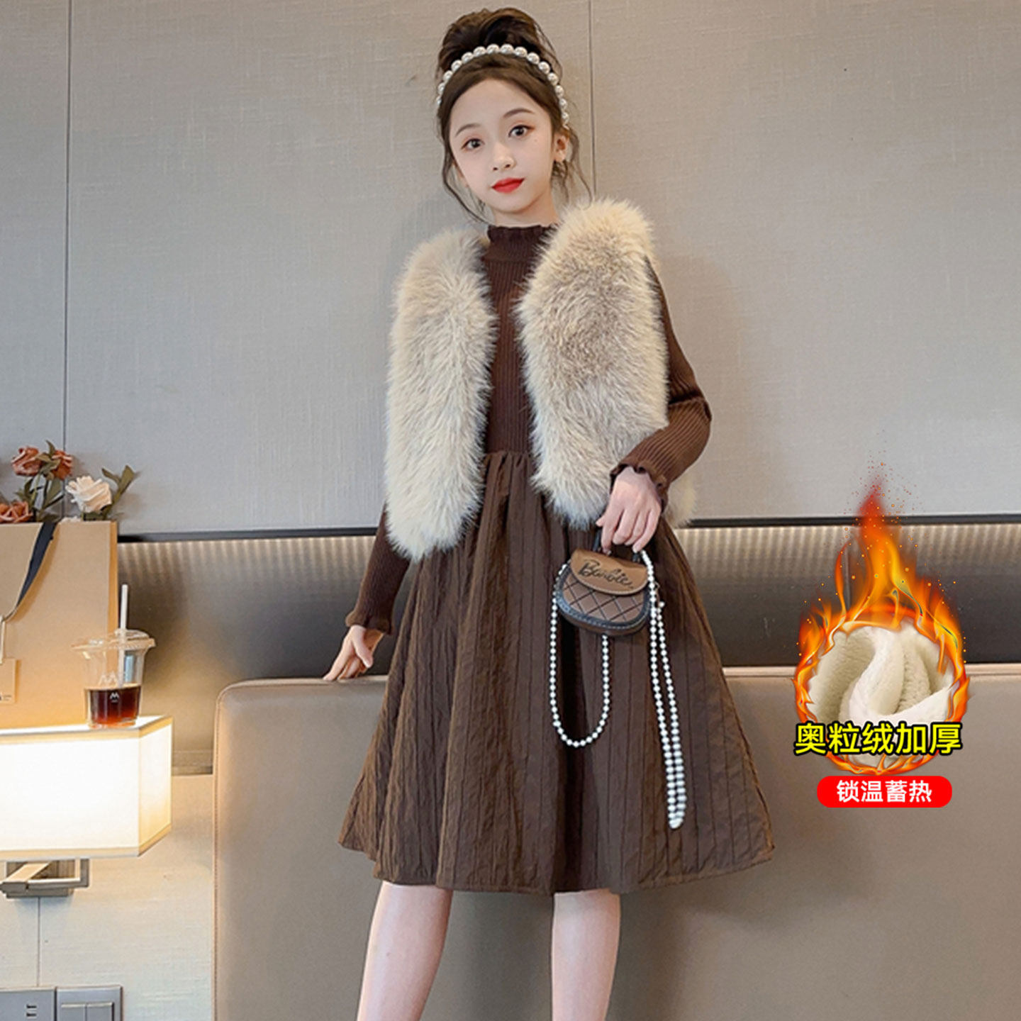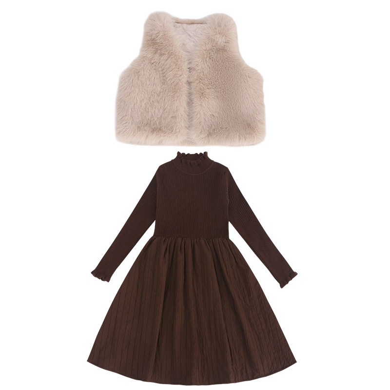 女童裙子冬季2025新款中大童女孩洋气时髦过年服秋冬儿童冬装套装