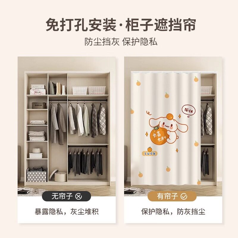 衣柜帘子遮挡帘无门书柜防尘帘衣帽间门帘货架置物架滑轨遮丑拉帘
