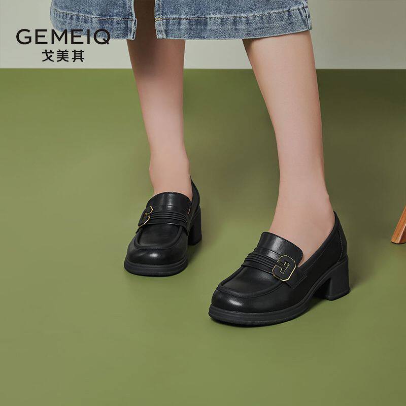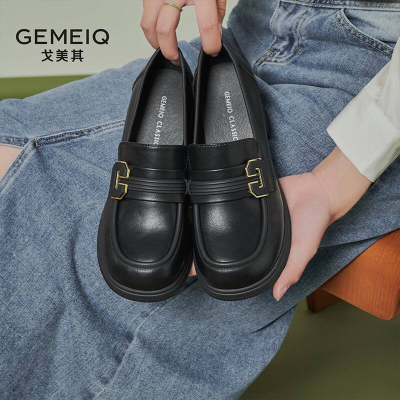 戈美其真皮软底新款百搭女鞋春季通勤皮鞋英伦脚蹬单鞋时尚乐福鞋