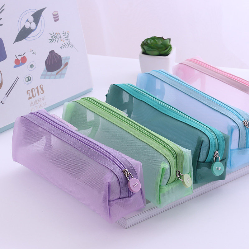 透明网纱笔袋幼儿园小学生初中生专用文具盒耐脏大容量网格铅笔袋男孩女生文具袋女孩简约ins日系儿童铅笔盒