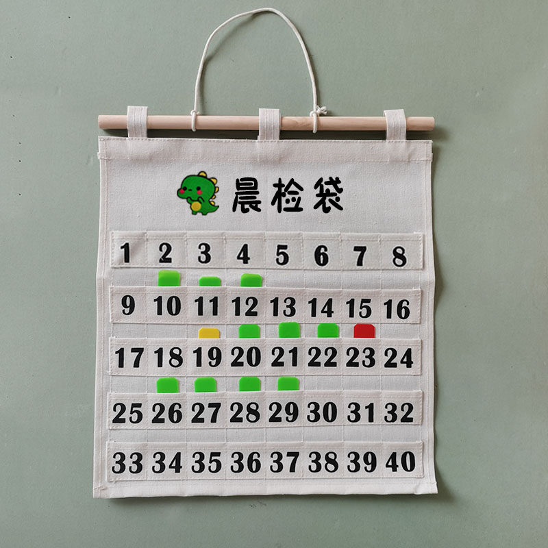 幼儿园帆布晨检卡收纳袋挂式健康打卡签到牌储物袋儿童早教晨检袋