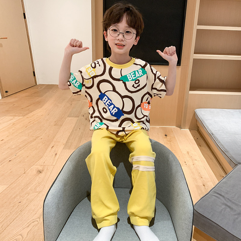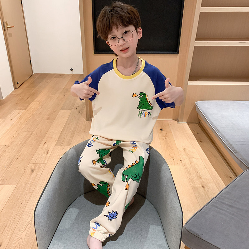 男童睡衣短袖长裤宝宝全棉大童套装儿童内衣家居服纯棉男孩春秋季