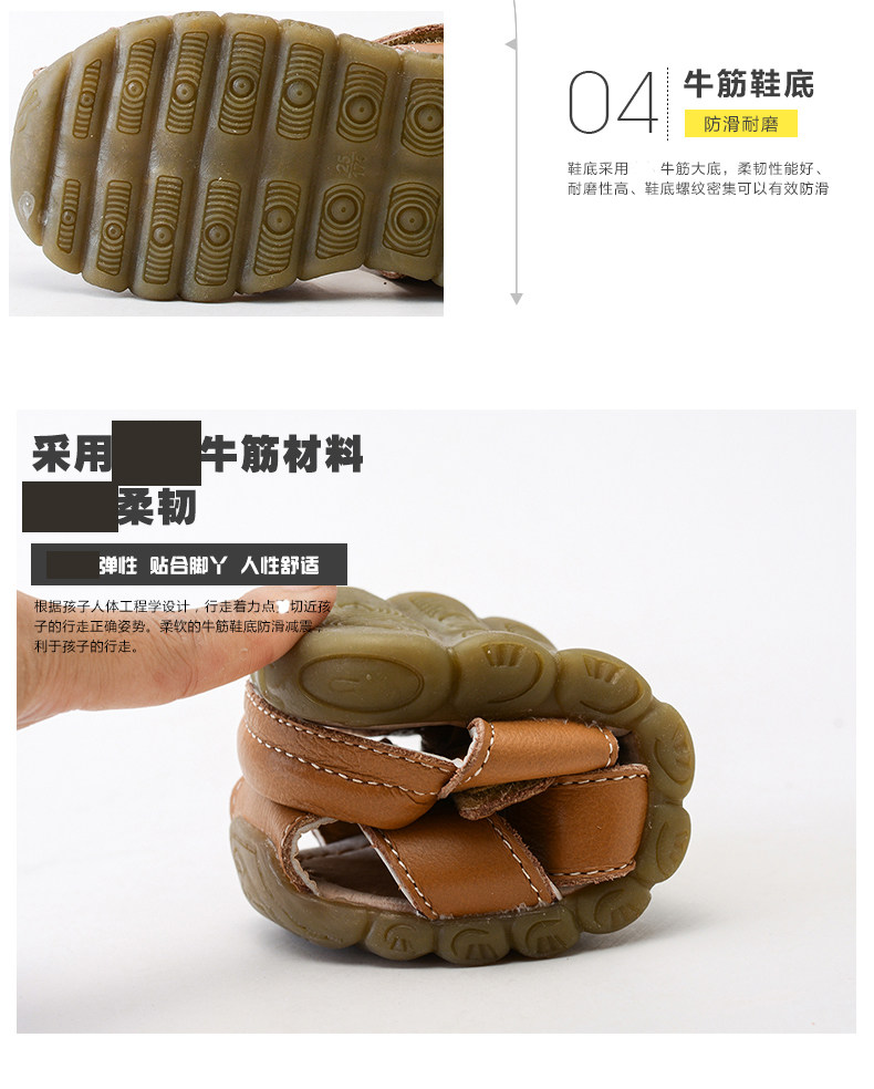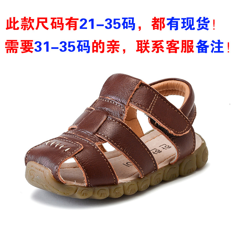 2025韩版男童沙滩凉鞋儿童夏季包头休闲鞋防滑牛筋软底真皮女童鞋
