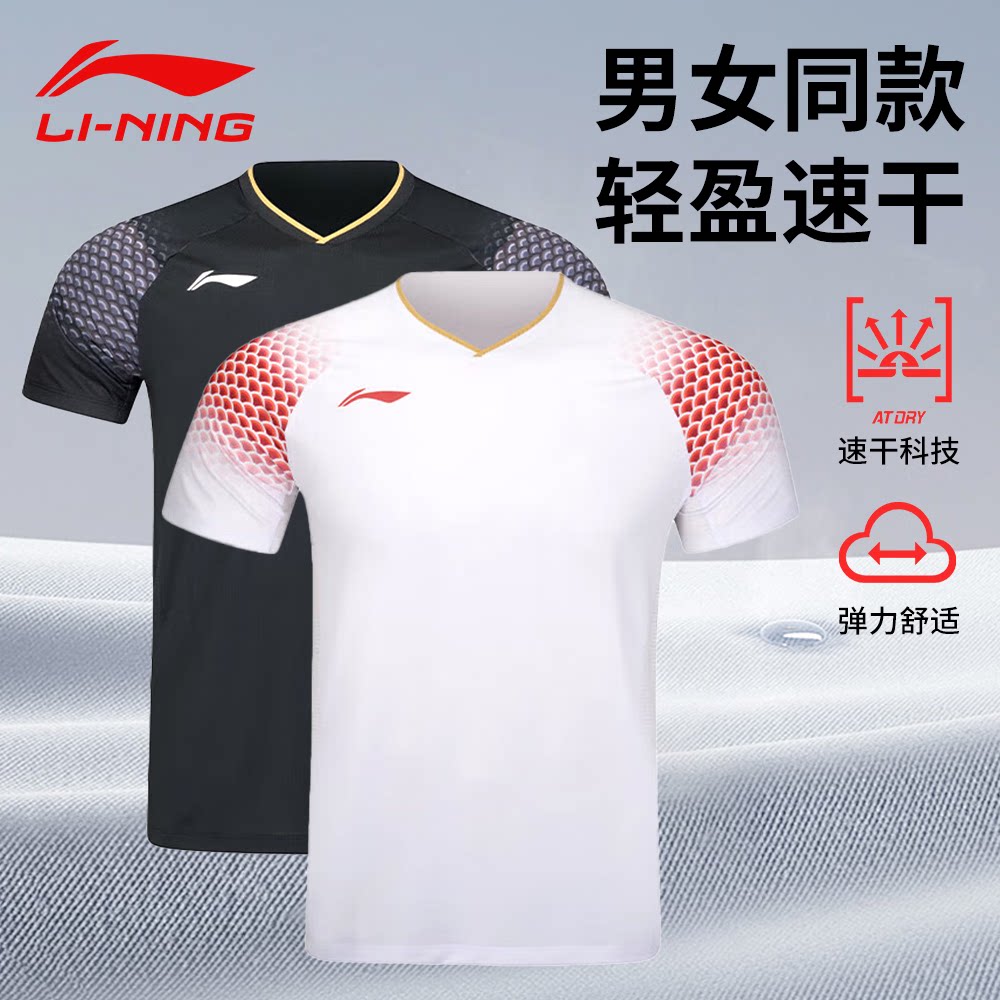 李宁羽毛球服男女中青队大赛服系列舒适透气专业比赛短袖AAYV153
