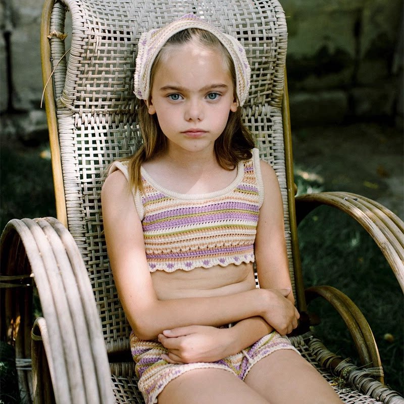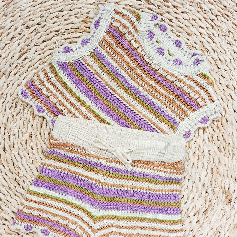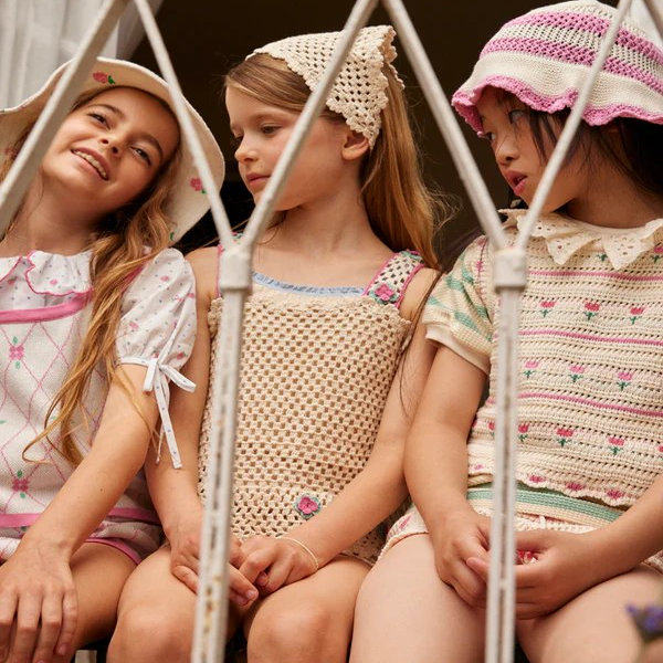 2026春夏新款北欧针织上衣裤子套装女童田园风甜美花朵马甲短裤