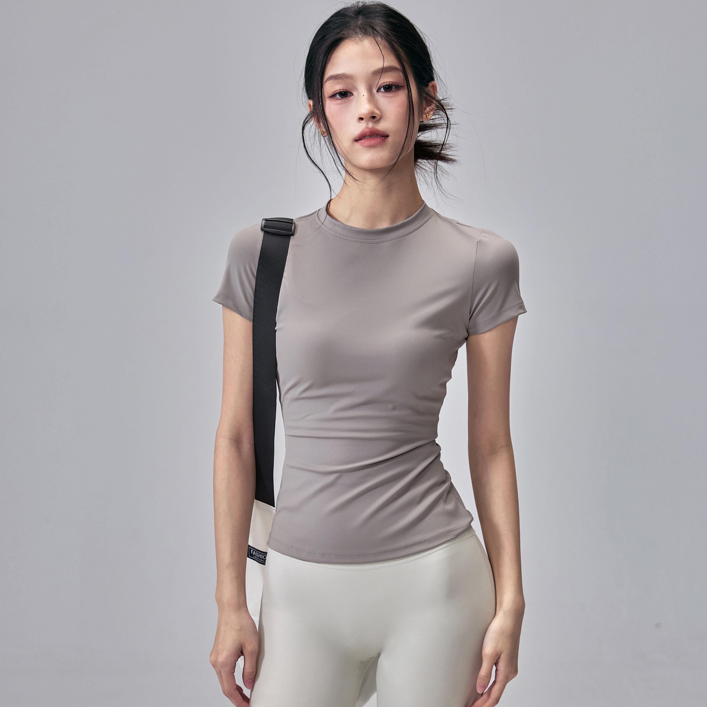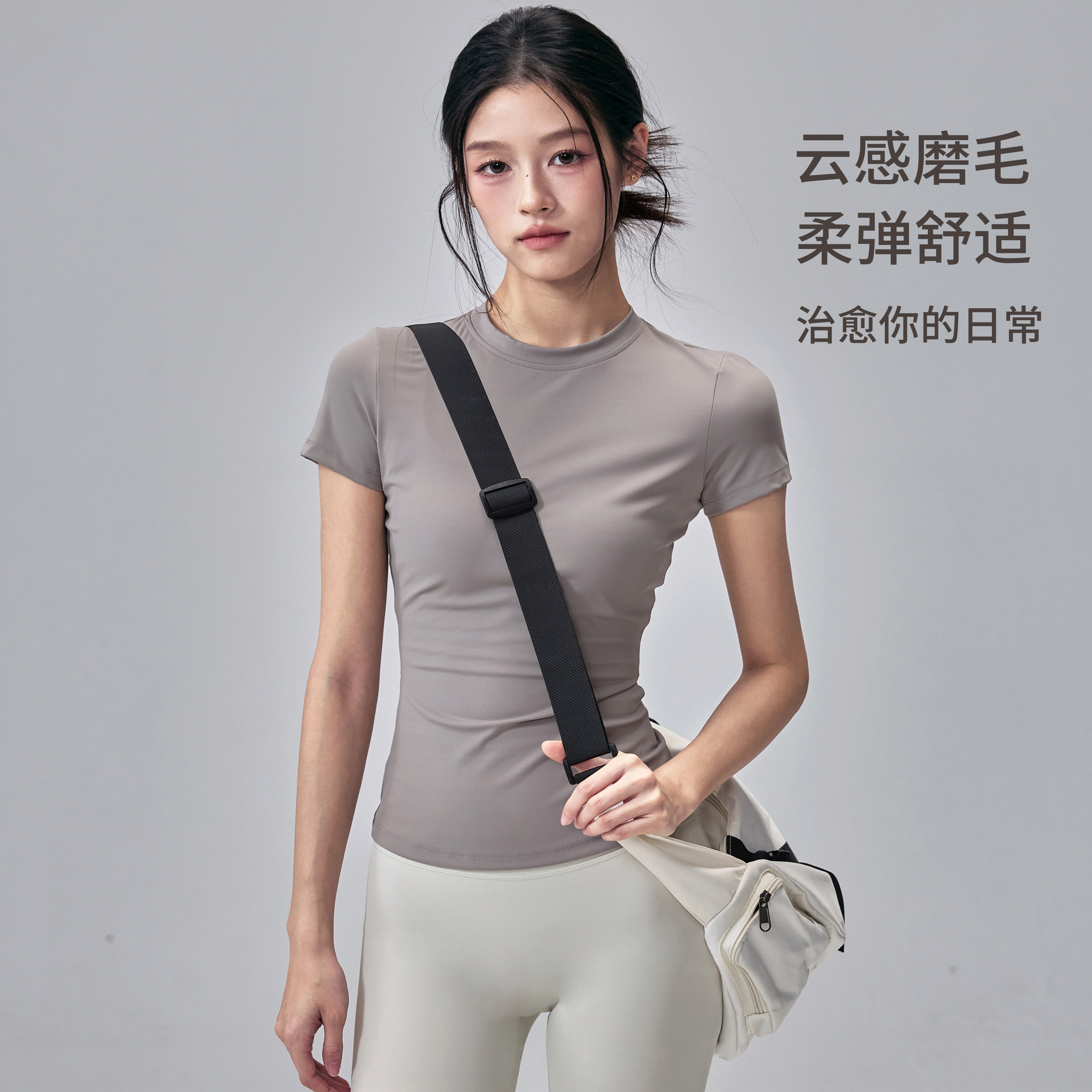 健身女孩高弹瑜伽服短袖圆领速干修身运动T恤薄款跑步训练上衣夏