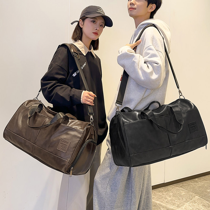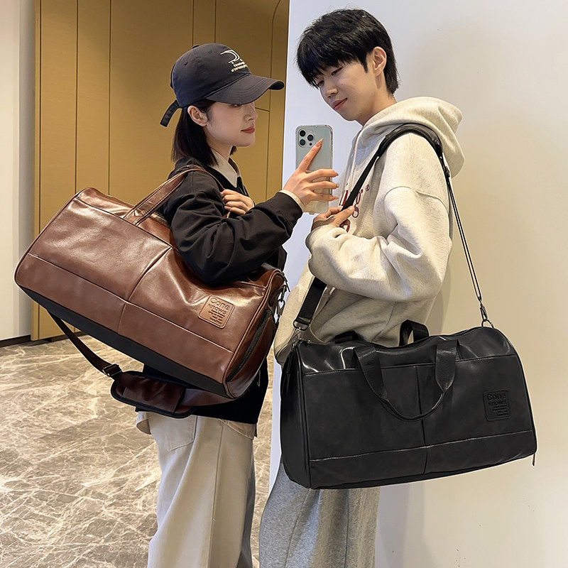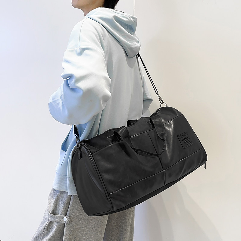 短途旅行包男士潮牌PU手提行李挎包大容量运动训练健身包干湿分离