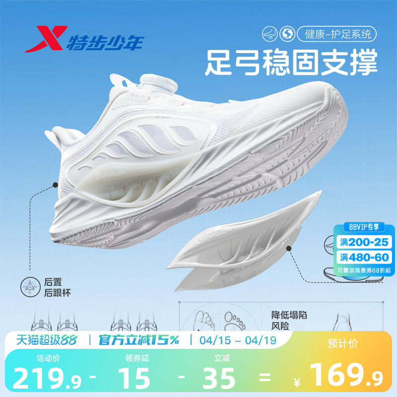 【氢风8.0护足跑鞋】特步童鞋男童运动鞋白色儿童跑步鞋男孩鞋子