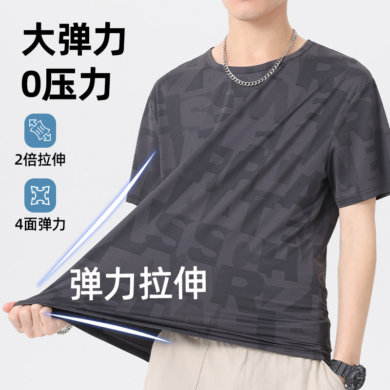 冰丝短袖t恤男夏季薄款速干宽松休闲青少年胖子加肥加大大码男装