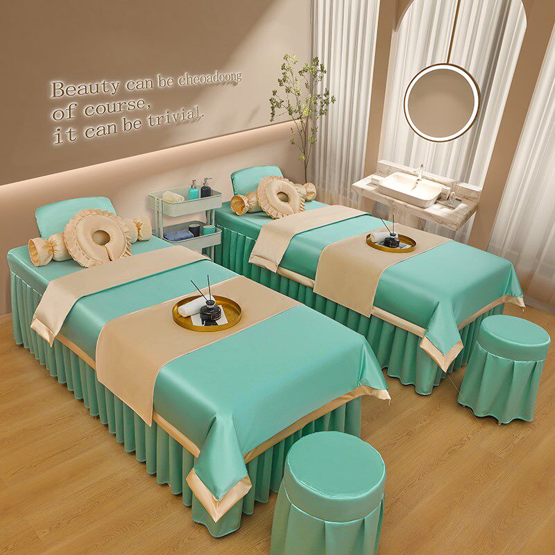 冰丝夏季美容床罩四件套纯色浅绿色冰凉清爽按摩床上用品订做logo