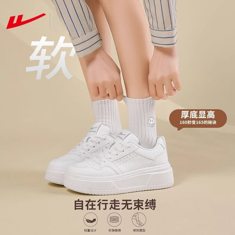 回力小白鞋女款厚底增高透气轻便软底防滑白色女鞋子系带休闲板鞋