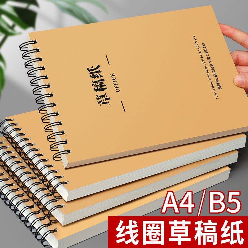 a4线圈草稿纸草稿本记事本空白小学生专用复古牛皮纸上翻线圈本初高中生大学生考研加厚可撕空白本绘画本子