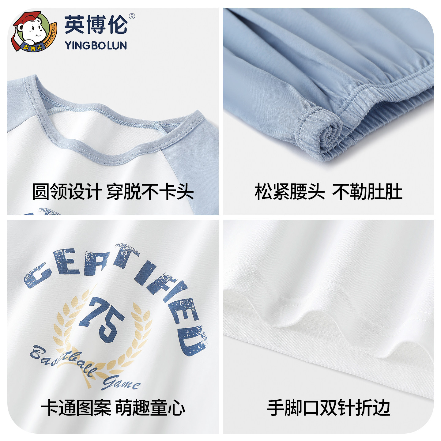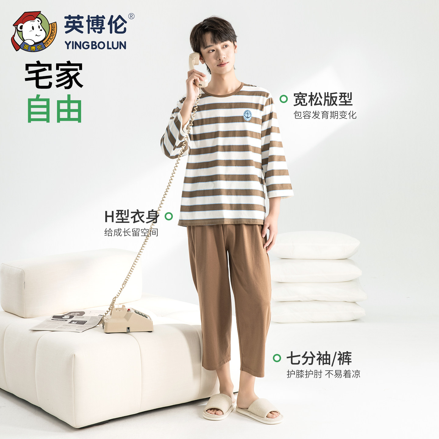 英博伦青少年家居服2026春秋新款100%纯棉男大童睡衣七分袖空调服