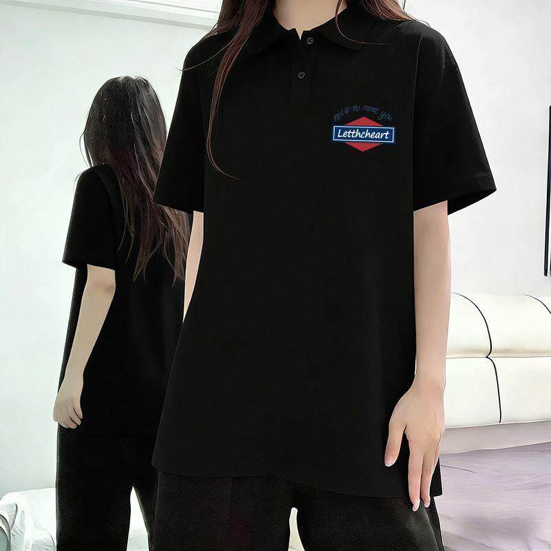 2026夏天新款美式设计感小众黑色POLO领短袖t恤女款宽松显瘦上衣