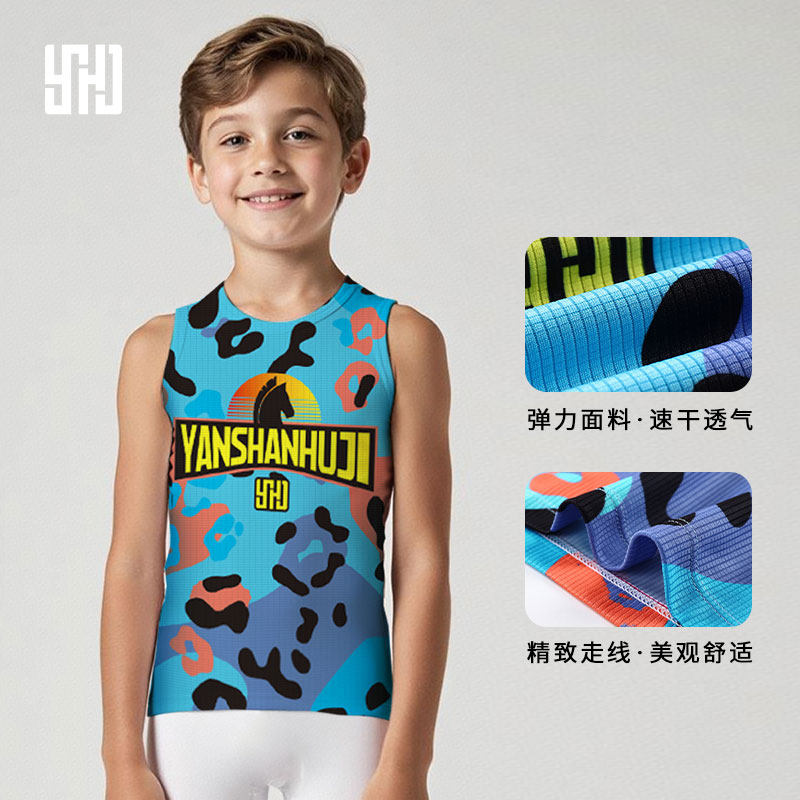 儿童背心骑行服无袖男童女童夏季平衡车轮滑体能训练排汗衫田径