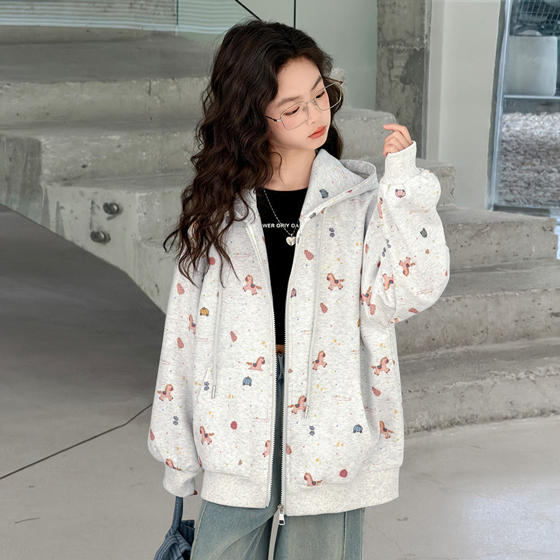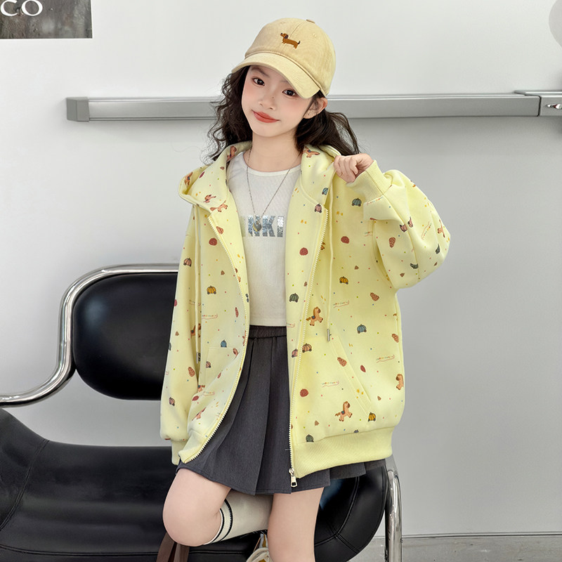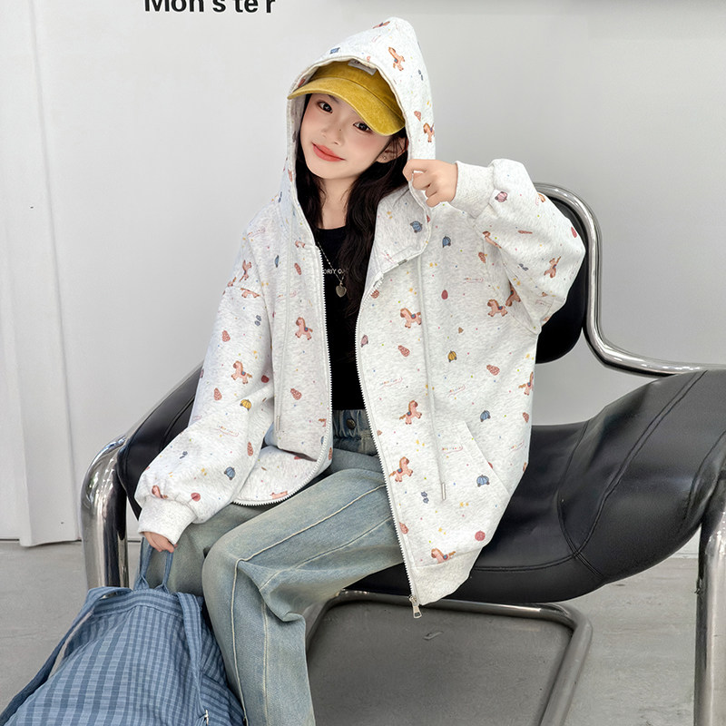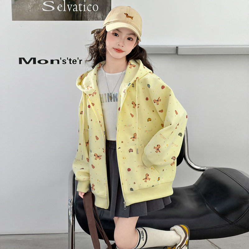 女童外套春秋2026新款儿童春装早春女大童连帽衫拉链上衣春款卫衣
