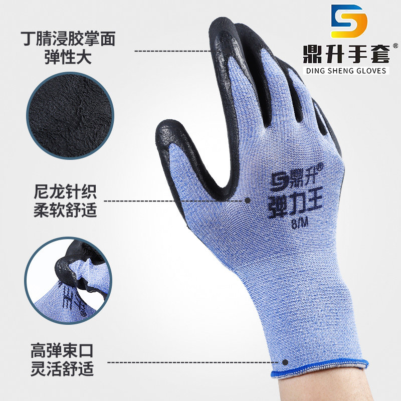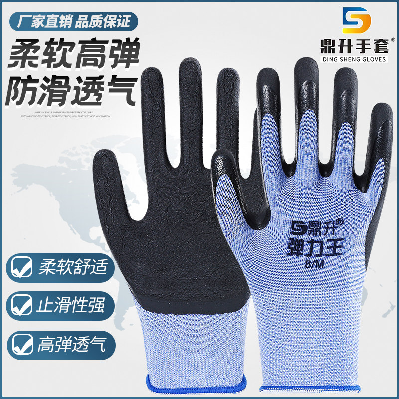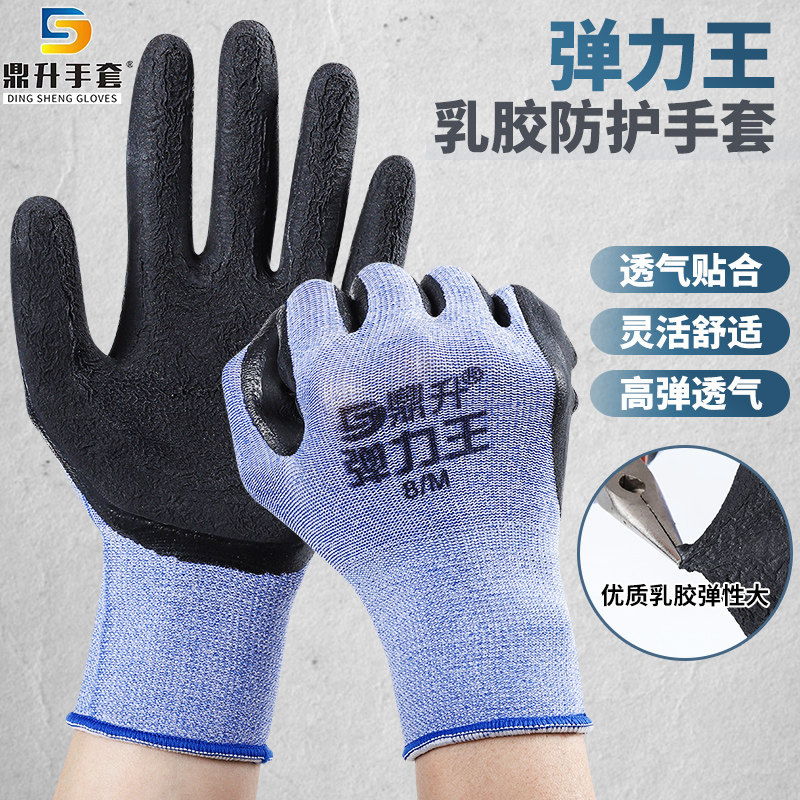 鼎升弹力王手套劳保耐磨防滑工作胶皮薄女小号工地干活男劳动橡胶