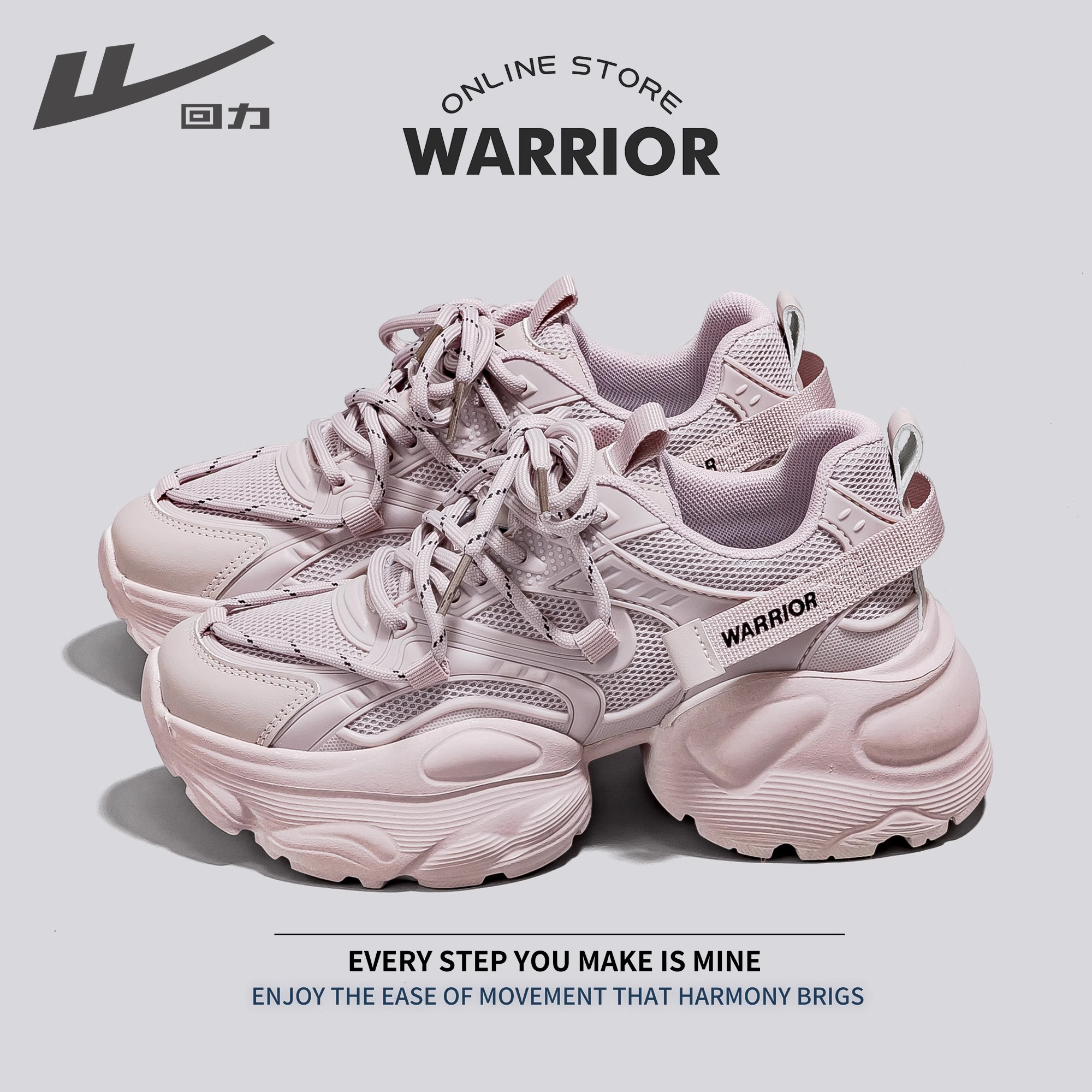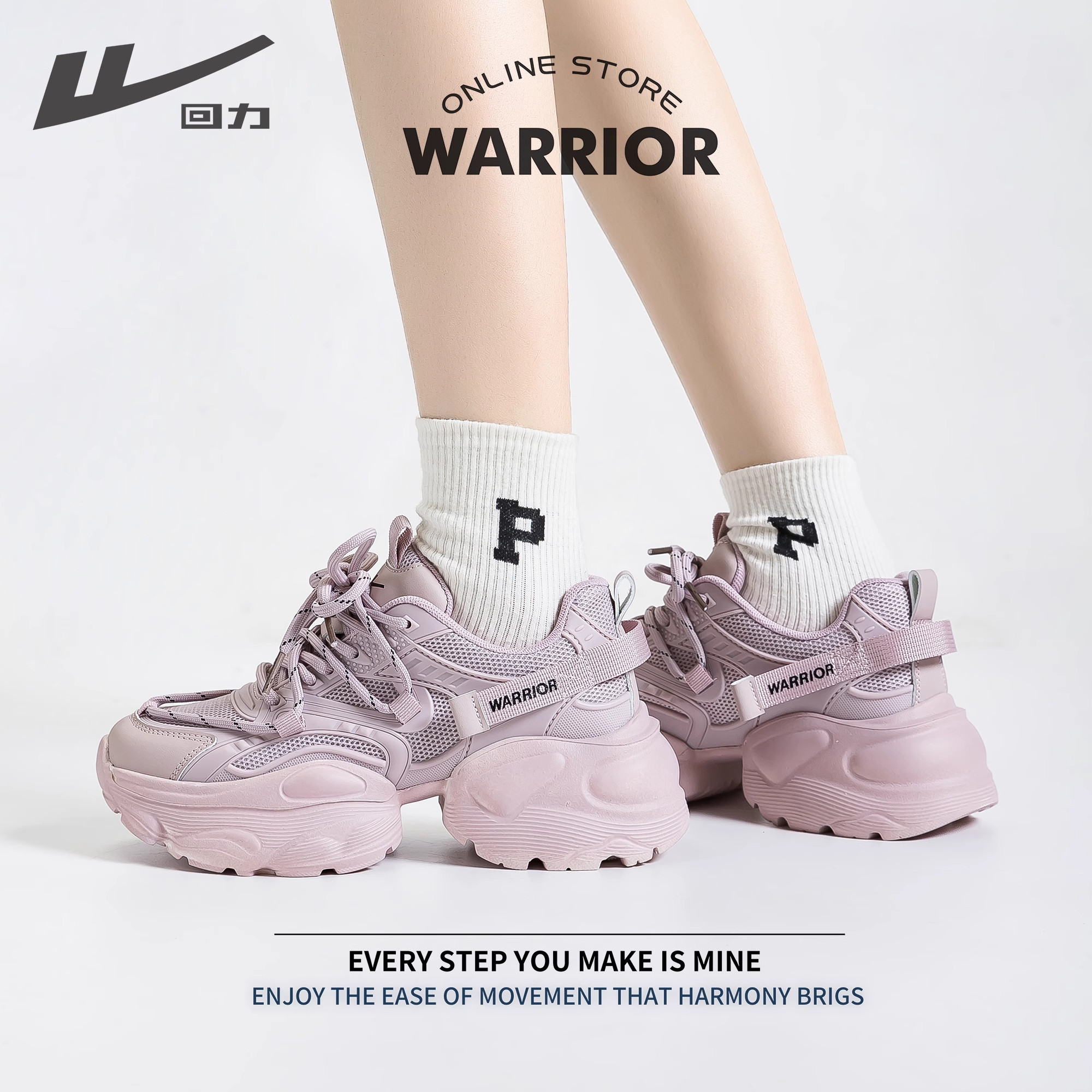 回力官方旗舰店老爹鞋女鞋2026春夏新款网面透气厚底增高运动鞋女