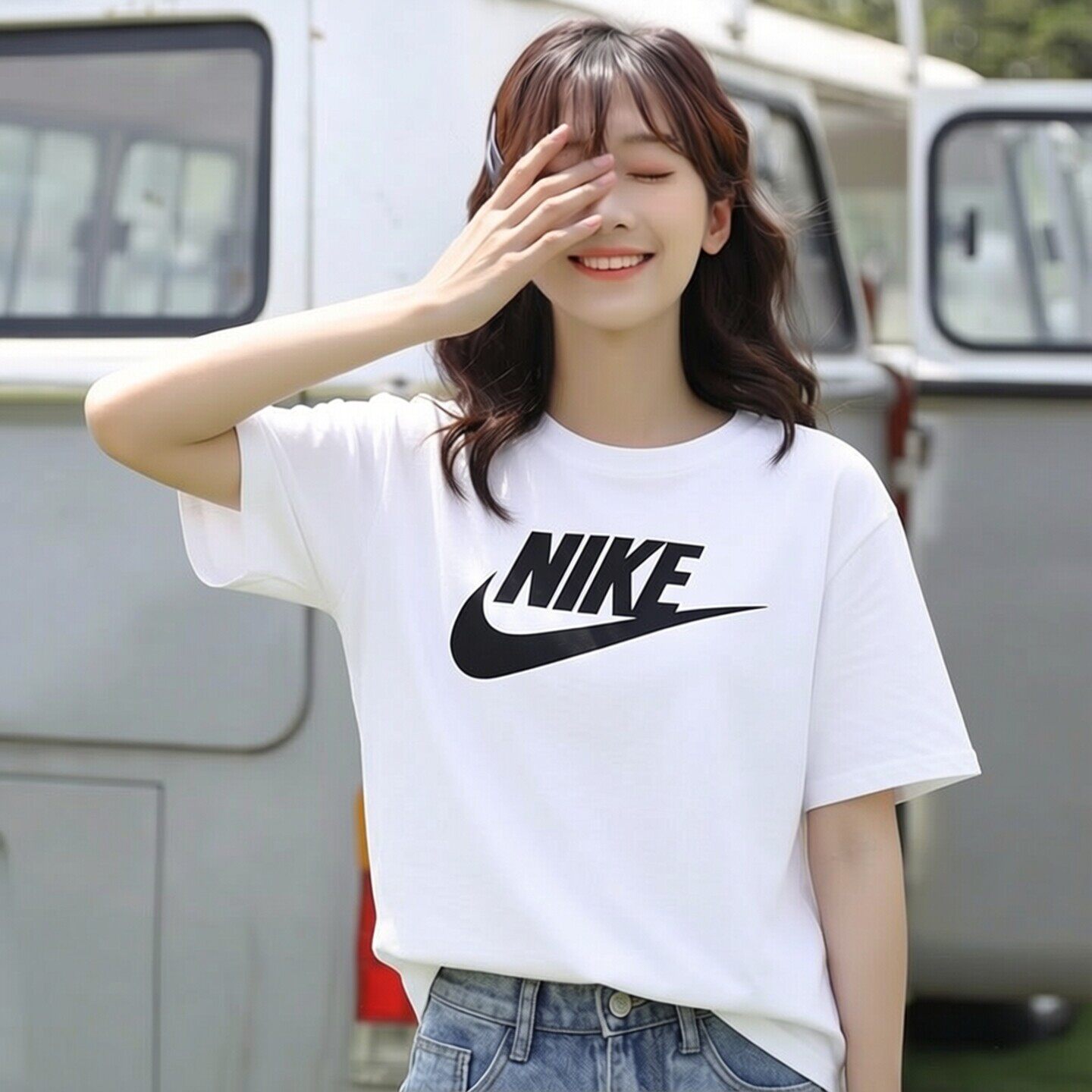 Nike耐克纯棉运动T恤圆领女士短袖新款休闲上衣白色健身训练服潮